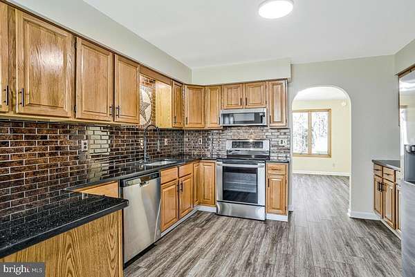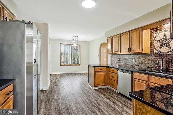 Welcome to this beautifully maintained all-brick rambler set on over 5 picturesque acres, offering space, versatility, and endless possibilities for country living. This spacious home features 3 bedrooms and 3 full bathrooms, along with a thoughtfully designed layout that includes a large kitchen with an eat-in breakfast area and a separate formal dining room-perfect for both everyday living and entertaining. The inviting living room flows seamlessly into a bright four-season sunroom, creating the perfect space to relax and enjoy views of the surrounding property year-round. The lower level offers additional flexibility with a second kitchen, full bathroom, and private entrance, currently set up as an efficiency-style living space-ideal for guests, extended household needs, or potential rental opportunities (buyer to verify use). Step outside to enjoy a charming garden patio just off the lower level, providing a peaceful outdoor retreat. The property also includes an attached two-car garage, as well as a detached garage in the backyard that was previously used to house a helicopter and features a large concrete pad-perfect for hobbyists, storage, or workspace needs. With over 5 acres of land, this property is well-suited for horses, livestock, or simply enjoying wide open space and privacy. A rare opportunity to own a versatile property with unique features and room to grow!