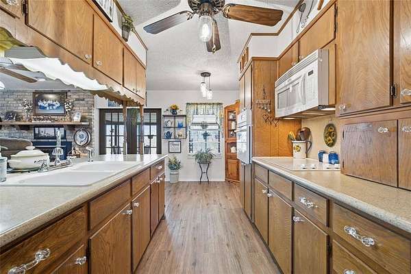 Nestled beneath a canopy of mature trees on a beautifully shaded property, this inviting one-story brick home offers the perfect blend of privacy, space, and peaceful country living--just minutes from town. A spacious circular drive provides ample parking. The charming front porch provides a warm welcome, leading you to a home designed for comfort and easy living. Inside, you'll find comfortable, light-filled living spaces with updated flooring and a practical, easy-flow layout suited for everyday life. The expansive covered patio and elevated deck overlook the scenic, tree-filled grounds, creating the perfect backdrop for morning coffee, casual gatherings, or quiet evenings outdoors. The property is fenced and cross-fenced with a dedicated area for animals. Two storage sheds offer excellent space for tools and equipment, and the larger shed has electricity already in place--perfect for projects, hobbies, or additional workspace. A covered RV parking with lighting area adds even more flexibility and convenience. With mature trees, usable land, and versatile improvements, this property offers the freedom to live the way you want--warm, welcoming, and truly a place to call home.