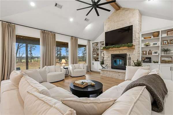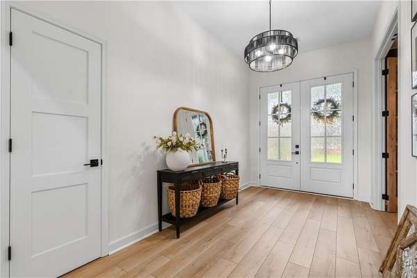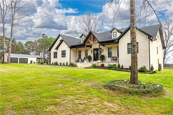 Welcome to your private country retreat! This stunning 3 bedroom, 2.5 bath home offering 2,750 square feet sits on 10+/- beautiful acres and combines modern comfort with peaceful country living. From the moment you arrive, you'll be drawn to the home's charming curb appeal, welcoming covered front porch, and beautifully maintained grounds. The property features a large scenic pond and a .55-mile walking trail, perfect for morning walks, evening sunsets, and enjoying the natural surroundings. The grounds are thoughtfully landscaped and include an abundance of fruit-bearing plants such as mature blackberries, elderberries, cherry trees, young apple trees, and fig trees, creating your own private orchard. Need space for hobbies, equipment, or projects? The impressive 30x40 fully insulated shop includes water and electric, a 12-foot overhang for additional covered work space, and is already stubbed for a future bathroom. This property offers country charm while still being close to town conveniences.