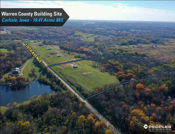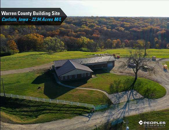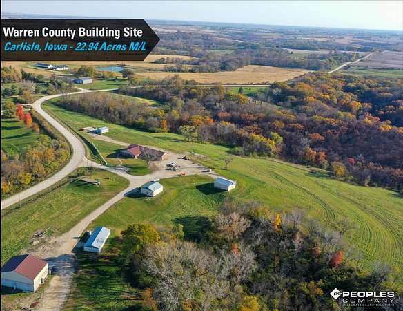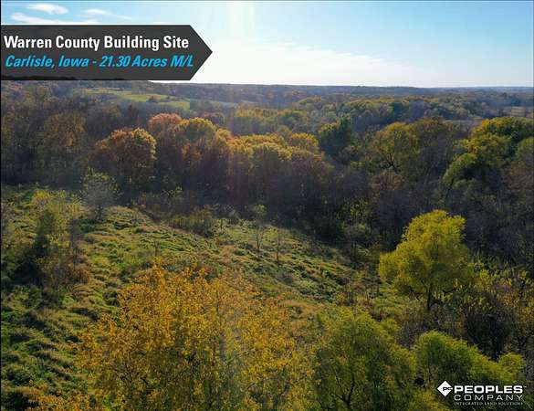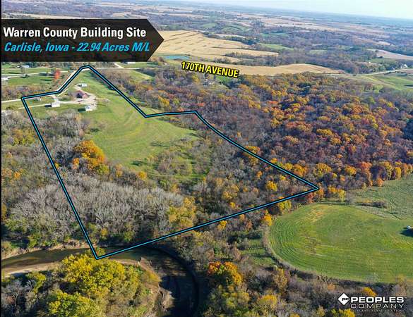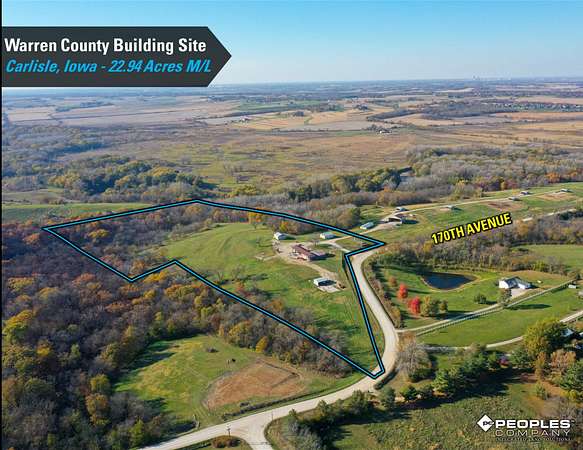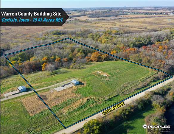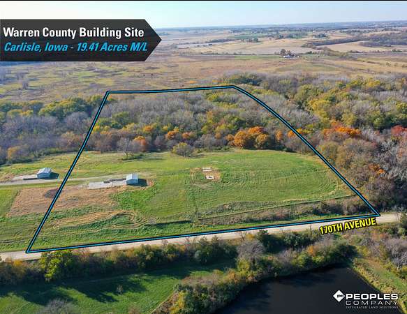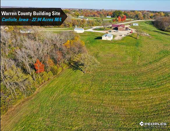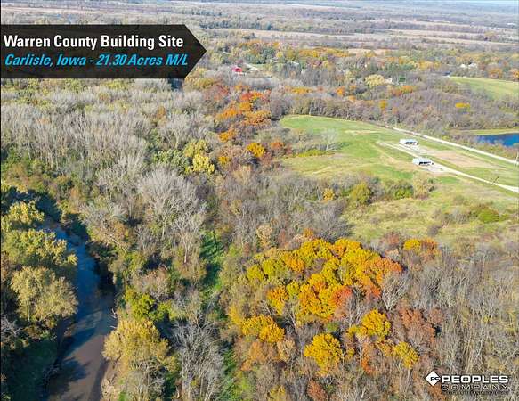 Peoples Company is pleased to present 79.74 acres m/l located just south of Carlisle, Iowa. This property offers four exceptional building sites featuring multiple outbuildings and surrounded by century-old hardwood trees. Situated near both the Middle River and the Des Moines River, the area provides abundant recreational opportunities. Conveniently positioned within the highly desirable Carlisle Community School District, the property is just minutes from Highway 5, 15 minutes from the Des Moines metro, and 20 minutes from West Des Moines.