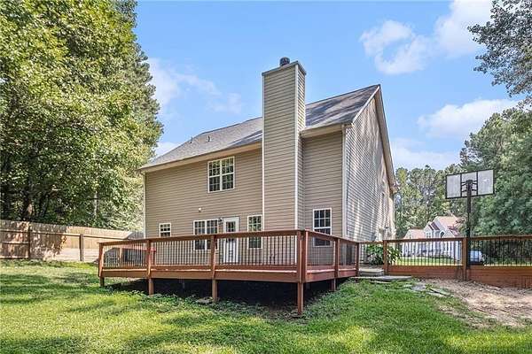 Your ideal home is here-set on a generous 1.56-acre private lot in the well-established Barrington Farms community. This 3-bedroom, 2.5-bath home offers the perfect blend of space, comfort, and privacy. Inside, you'll find stone countertops in the kitchen and a convenient upstairs laundry room near all the bedrooms. The large family room features a cozy fireplace and opens onto a spacious deck that overlooks the serene backyard-ideal for entertaining or simply unwinding. A flexible main-level room can easily serve as a 4th bedroom, office, or guest space. An additional storage building is included, and the backyard offers a truly private setting that's hard to find. Don't miss this rare opportunity to own a home with land, space, and charm in a desirable location!
