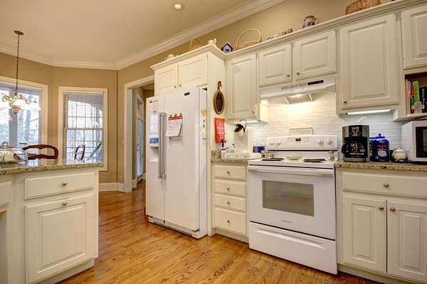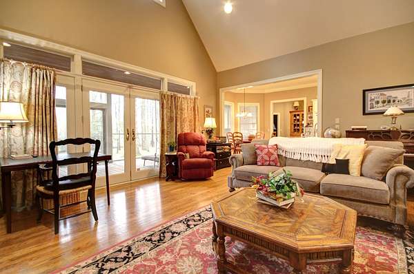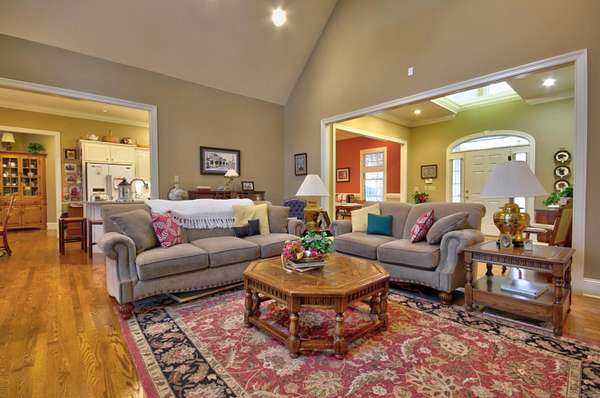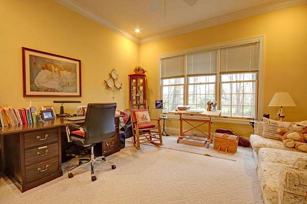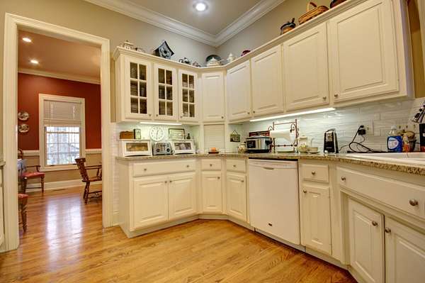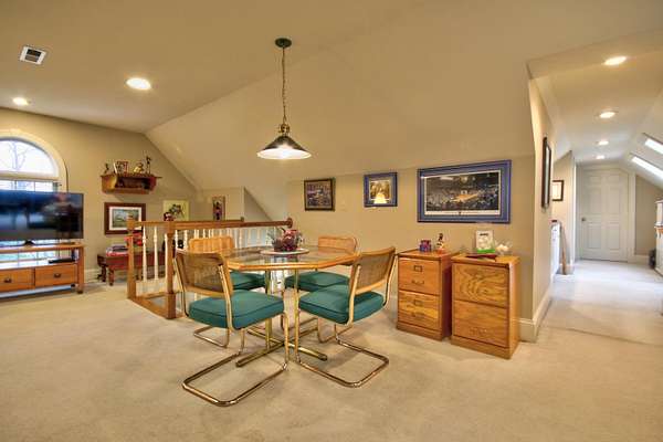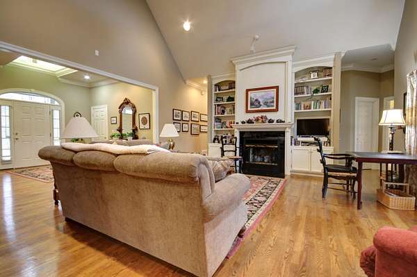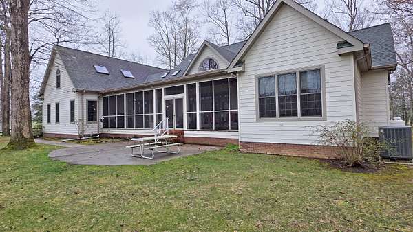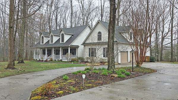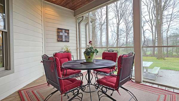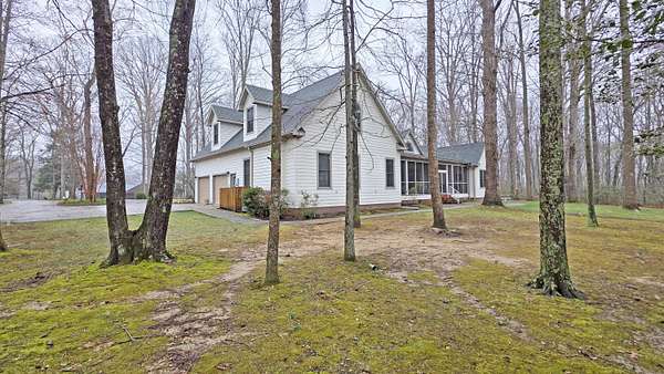 Try to imagine yourself living in this beautiful farmhouse in a wonderful semi-private park-like setting on 1.62 acres! From the moment you arrive, the long blacktop driveway, lined with trees and charming street lights, welcomes you home, leading to a circular drive with abundant space for guests and entertaining. This 4,178 sq ft home offers an inviting and thoughtfully designed layout, beginning with a stunning 2-story entry foyer that opens seamlessly into the spacious living room. Featuring a cathedral ceiling, a floor-to-ceiling gas log fireplace flanked by custom built-in bookshelves, and a wall of windows and doors, the space is filled with natural light and flows effortlessly to the screened-in back porch overlooking a serene, tree-lined backyard. The main level includes 3 bedrooms and 2 full bathrooms, along with a wonderful library showcasing an entire wall of custom bookshelves, perfect for displaying your favorite collections. The kitchen is beautifully appointed with upgraded granite countertops, subway tile backsplash, and ample cabinetry, offering both style and functionality. Upstairs, you'll find a versatile multi-functional space ideal for an in-law suite or private retreat, complete with a large open living/dining/recreation area, bedroom space, mini kitchen with cabinetry and sink, additional built-ins, and a full bathroom. A generously sized walk-in attic with flooring and a window provides excellent storage or the opportunity to expand. Enjoy peaceful outdoor living from the large front porch or relax on the screened back porch while taking in the natural surroundings. The flat, tree-filled lot enhances the sense of privacy while still being conveniently located near everything you need. This exceptional property offers the perfect blend of luxury, comfort, and functionality-truly a place you'll love to call home.