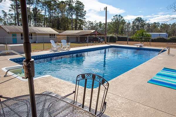Where paved road meets red Georgia clay, discover the rare charm of 171 Cherrywood Dr. Located 3 miles outside of the Alma, Ga city limits and a short 20 minute drive to bustling Douglas, GA, this property offers privacy as well as easy access to modern amenities. Nestled on 2.5 private acres, this tastefully remodeled 3-bedroom, 2-bath home features a vaulted living room, flexible spaces, and timeless finishes throughout. A sun-drenched sun-room seamlessly connects to a fenced-in pool with all new 2025 components, offering a private oasis for indoor/outdoor living. The property includes a fully equipped guest house which is perfect for multi-generational living or rental income--and a versatile shop for hobbies, storage, or adventure gear. This South Georgia retreat combines privacy, versatility, and charm that is hard to find.