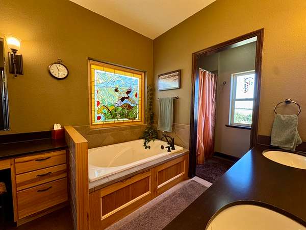 The main home, built in 2009, offers 4 bedrooms and 2.75 bathrooms with 3,736± total square feet and attached two car garage. The main level includes 1,868 square feet with a well-designed layout featuring a spacious kitchen, formal dining room, and an open-concept living area. The kitchen features top of the line stainless steel appliances, gas range/oven, dishwasher, refrigerator and hickory cabinets. Cork flooring is featured in the kitchen and main areas, adding warmth and character. The basement is finished and includes new carpet along with updated vinyl plank flooring in the bedroom and bathroom, plus a comfortable sitting space with cork flooring. A large utility and storage room provides additional functionality. The home also includes an attached two-car garage with additional storage areas. On the South side of the main house is a large concrete patio perfect for grilling and a hot tub ready for relaxing. Next to the patio is an attached green house that includes its own heating and cooling system.