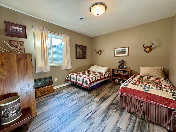 A large fenced garden area offers plenty of space for growing produce or supporting a homestead lifestyle. The property is also well equipped with more than 20 hydrants located throughout the acreage, providing convenient water access for gardening, and property maintenance.