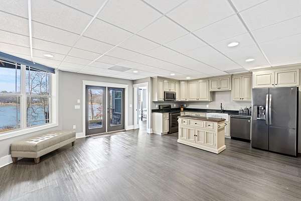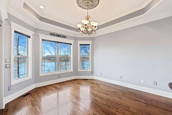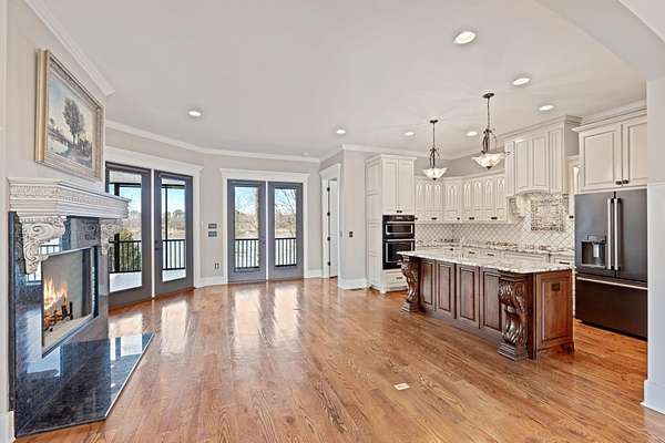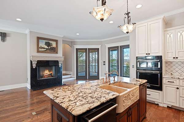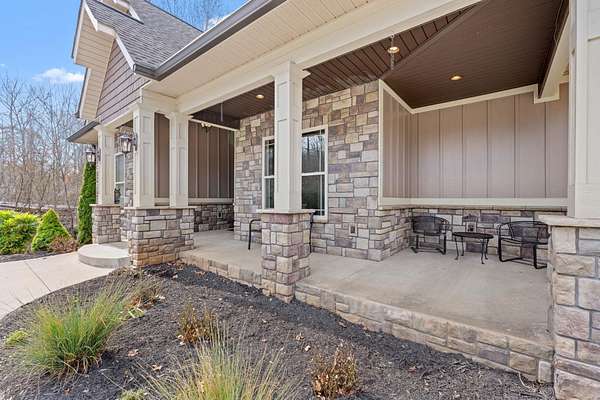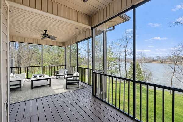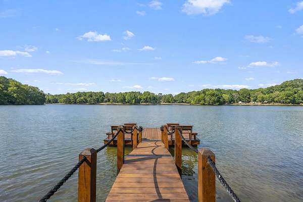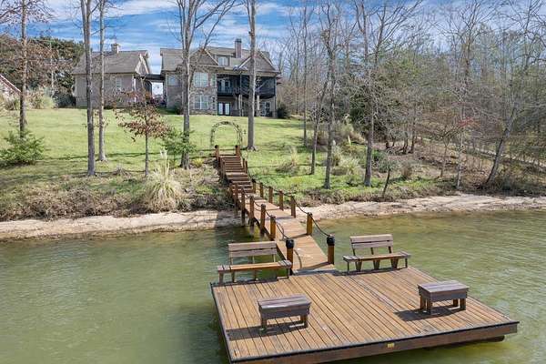 Searching for an extraordinary lakefront estate on Lake Bowen? Welcome to a rare European-inspired masterpiece where architectural elegance meets resort-style living on 1.66 pristine acres of sparkling open water. Built in 2018, this impeccably designed five-bedroom, four-bathroom residence offers a level of craftsmanship and scale seldom found in the Upstate. Two fully independent living quarters--each with its own kitchen and laundry--create unparalleled flexibility for multi-generational living, luxury guest accommodations, or premium income-producing potential. A private dock stretches into the tranquil waters of Lake Bowen, positioned in a peaceful cove with breathtaking panoramic views of both lake and the distant mountains. Designed for year-round enjoyment, the expansive 26.7 x 15.8 screened porch--secured beneath as well--mirrors the generous patio below, creating layered outdoor living spaces that feel like a private waterfront retreat. The grand two-story stone entry sets a tone of distinction as you pass through double doors into a home defined by soaring 10-foot ceilings, 8-foot doors on the main floor, and five-inch oak hardwoods throughout (except bathroom and laundry). The formal dining room impresses with coffered ceilings and refined moldings, opening seamlessly toward stunning lake views. At the heart of the home, the chef's kitchen is both dramatic and functional. A statement island adorned with corbels anchors the space, complemented by upper-tier granite, a marble farmhouse sink, copper fixtures and pot filler, illuminated glass cabinetry, tiled backsplash, built-in oven and microwave, print-shield dishwasher, smooth-top range, and a walk-in pantry. Every detail was curated for elevated living. The living room features a wood-burning fireplace and dual patio doors that both open to extend the space effortlessly onto Trex decking, blurring the line between indoors and out. The primary suite is a private sanctuary positioned to capture magnificent waterfront views. With a trey ceiling, porch access, spa-like bath featuring a soaking tub, tiled glass shower, double vanity, and custom walk-in closet, it delivers the serenity of a luxury resort. Two additional main-level bedrooms are thoughtfully on the other side of the home, separated by a pocket door and share a beautifully tiled bath with glass-enclosed shower and soaking tub. Upstairs, a refined guest suite with loft, dormer accents, walk-in closet, and double-vanity bath offers both charm and privacy. The lower level unveils an entirely separate living environment with waterproof luxury vinyl plank flooring, a full kitchen with island, arched dining area, secondary master suite with washer and dryer hookup, additional bedroom or office, full exercise room, and dual-vanity bath--ideal for extended stays or private quarters. Across the street, a detached structure expands the possibilities: two additional garage spaces, six covered storage bays for boating equipment, and a finished gathering space--the ultimate man cave or she shed. In total, this estate provides four enclosed garage spaces plus six covered bays, creating exceptional capacity for car collectors, watercraft enthusiasts, and outdoor recreation. Created in the 1960s, Lake Bowen spans 1,534 acres with 33 miles of shoreline and is cherished for its pristine waters. Boating, skiing, fishing, and kayaking thrive here, with motor restrictions of 115 horsepower that help preserve the peaceful atmosphere. Located less than 30 minutes from Tryon International Equestrian Center, this property offers both seclusion and accessibility. Additional refinements include a termite bond, irrigation sourced from the lake for a nominal annual fee, and available architectural blueprints. This is more than a home--it is a statement of lifestyle. A rare opportunity to own a private waterfront estate where sophistication, scale, and serenity converge on one of the Upstate's most coveted lakes.