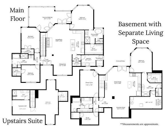 - Basement, Bathroom x 5, Bedroom x 4, Den, Dining Room, Exercise Room, Kitchen, Living Room, Loft, Master Bedroom, Office, Workshop