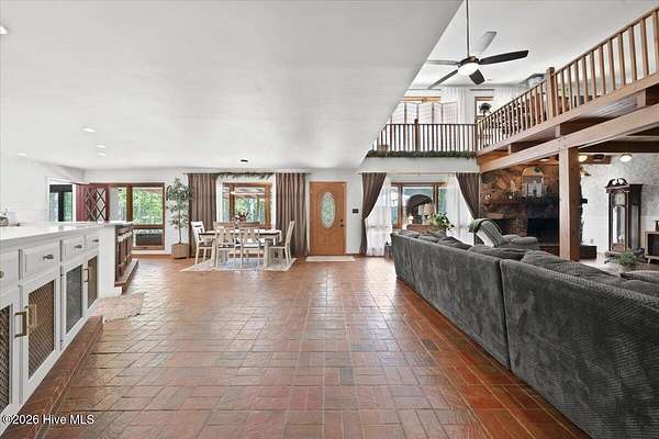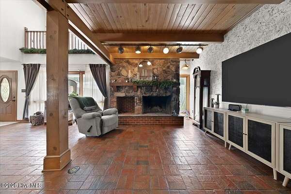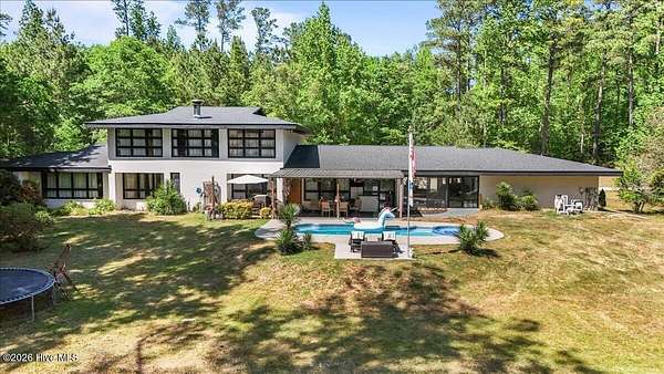 Welcome to 171 Dobbins Lane, Rockingham, NC-an extraordinary 60-acre private estate where luxury living, working land, and unmatched versatility come together in one remarkable offering. Ideally located with privacy and space to roam, yet only approximately 30 minutes from Pinehurst and its world-class golf, this property offers the perfect blend of peaceful country living and convenient access to one of North Carolina's premier destinations. The nearly 5,000 square foot main residence features 4 bedrooms, 3 bathrooms, an attached 2-car garage, and stunning architectural character throughout. Inside, soaring ceilings, exposed beams, a dramatic stone fireplace, custom built-ins, and solid wood craftsmanship throughout create a warm and timeless feel. Brick floor pavers throughout much of the home add texture, durability, and one-of-a-kind charm. A bright and inviting Carolina room offers the perfect place to enjoy peaceful views of the property year-round. The thoughtfully updated kitchen is designed for both style and function, featuring porcelain tile floors, quartz countertops, a matching quartz desktop/workstation area, and a full-height quartz backsplash extending to the cabinets for a clean, seamless designer look. Completing the space are KitchenAid stainless steel appliances and a nearby wet bar with a secondary sink featuring a collapsible faucet, allowing added functionality while conserving space when not in use. Recent improvements include a new roof installed in 2024 with architectural shingles, adding long-term value and peace of mind for the next owner. Step outside to your own private retreat featuring a 16x32 heated saltwater pool installed in 2018, relaxing hot tub, and outdoor entertaining space powered by a Jandy propane heating system. Beyond the pool, enjoy a private fully stocked pond approximately 18 feet deep, complete with a floating dock and gazebo--ideal for fishing, relaxing, or taking in quiet Carolina sunsets. Enhancing both curb appeal and evening ambiance is the Govee Permanent Outdoor Lights Pro system, offering a premium exterior lighting package that is fully customizable and app-controlled. Easily change colors, brightness, themes, and holiday displays right from your phone to create the perfect look year-round. One of the standout features is the impressive 60x30 workshop/building with attached office and oversized 12-foot garage doors. The concrete in this building were poured thicker to be able to withstand heavy equipment. This versatile structure is perfect for storing tractors, farm equipment, trailers, heavy machinery, bulldozers, tools, boats, sports cars, antique automobiles, or collector vehicles, while also offering functional workspace for hobbies or business needs. Equestrian and agricultural buyers will appreciate the horse barn, open hay field, and expansive acreage suitable for horses, cattle, farming, recreation, or future possibilities. For outdoor enthusiasts, this property also offers exceptional access to North Carolina's treasured game, with habitat known to attract majestic whitetail deer, wild turkey, quail, rabbit, dove, and waterfowl. Adding to the property's versatility are three additional residences, bringing the total to four homes on the property. These include one single-wide home, one double-wide home (both offering 3 bedrooms and 2 bathrooms), plus an approximately 1,000 square foot house ready for renovation that could become an excellent guest cottage, caretaker residence, rental opportunity, or housing for farm help. With three private entrances, exceptional privacy, and endless flexibility, 171 Dobbins Lane is a rare chance to own a true family compound, private retreat, sporting estate, or legacy property. New carpet upstairs installed within recent months. Luxury. Land. Freedom. Location.