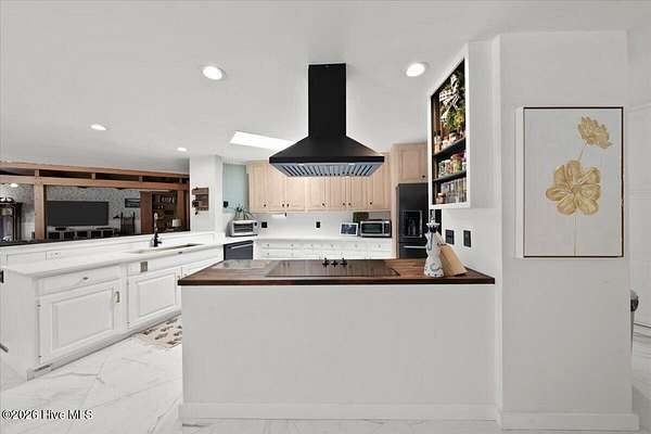 - Built-In Electric Oven, Built-In Microwave, Cooktop, Dishwasher, Disposal, Electric Cooktop