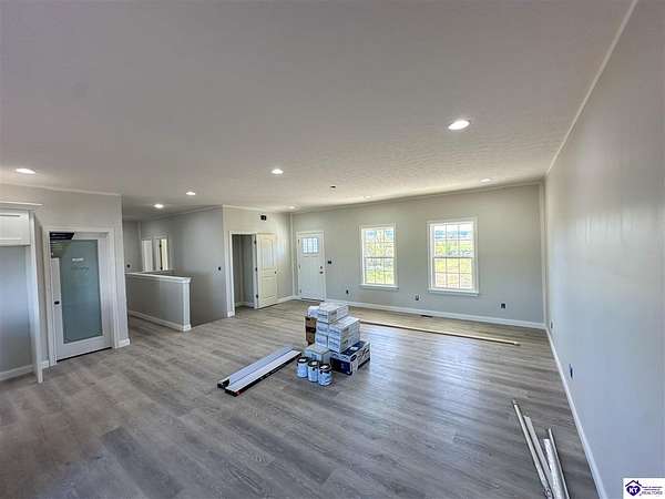 ACTIVE UNDER CONTRACT WITH 48 HR FIRST RIGHT OF REFUSAL. SHOWINGS AND OFFERS WELCOME. Welcome to 171 Gordon Drive, Ekron, KY 40117 -- a stunning new 3-bedroom, 2.5-bath ranch situated on a 1.83-acre lot. This thoughtfully designed home offers modern comfort, elegant finishes, and the perfect blend of functionality and style. Step inside to an open-concept layout featuring a spacious kitchen with Colonial White custom cabinetry, the pantry of your dreams, granite countertops, and stainless steel appliances. The primary suite is a relaxing retreat complete with a custom tile shower, separate soaking tub, and double vanity. All bedrooms feature generous closet space for convenient storage. Enjoy outdoor living with a covered front porch and a back deck overlooking the peaceful countryside. The home also includes concrete sidewalks, a two-car attached garage, and a full unfinished walkout basement with rough-in plumbing for a fourth bathroom, offering endless potential for future expansion. Listed at $359,900, this beautiful home will be move-in ready by mid-November 2025. Don't miss your opportunity to own a brand-new home in a serene setting with convenient access to local amenities.