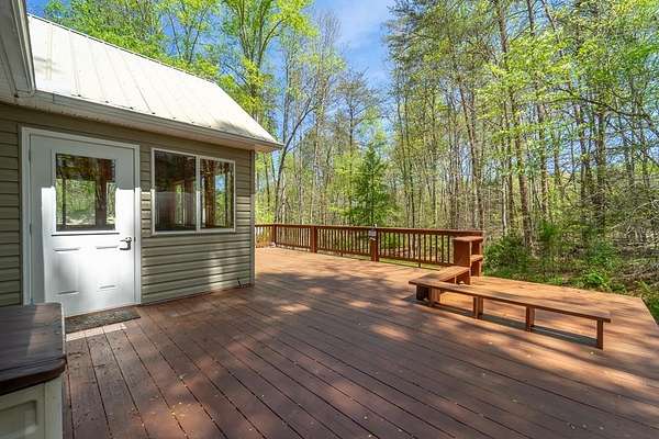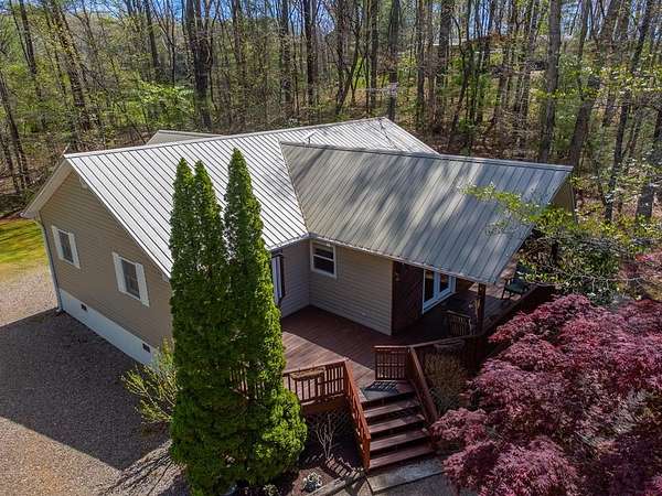 UNRESTRICTED 1.63 great laying acres and 2BR- 2 Bath home (Both Primary Bedrooms) appx 1392 sq ft with central H-A, new encapsulated crawlspace in 2025, On Demand hot water, metal roof, walk in closets, Sunroom (14`10 x 9`6) overlooking the private wooded backyard with fire pit , detached carport & storage building, HUGE back deck with area for hot tub with electric outlet already installed, lights and water feature! This property is what most buyers are now looking for with some usable rolling mowed land in front of the home and a private back yard with some grass and a beautiful rolling forest surrounding the fire pit area. Mountain Views from the front deck! THIS HOME IS A MUST SEE FOR ANY BUYER IN THIS PRICE RANGE! Schedule your appointment to view today with the listing agent or your favorite realtor!