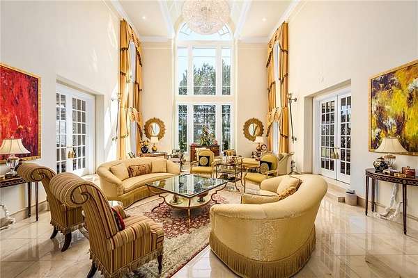 Gated custom built Mediterranean Estate privately elevated on 3+/- acres! Elevator to all levels. Incredibly tall 18' ceilings + open floor plan give the home a sophisticated enchanting air. Resort style living with distinctive hardcoat stucco architectural details. A grand main level Living Room features floor to ceiling windows, marble flooring, and a striking barrel vaulted ceiling. Handsome Paneled Study offers a work from home niche. Beautifully appointed dine in Kitchen opens to a fireside Keeping Room & separate Dining Room. Primary Kitchen finishes include Sokee cabinets from Japanese exotic wood with a black & bronze piano finish. Appliances include Gaggenau, Thermador, SubZero, and dual dishwashers. An en suite Bedroom and second prep Kitchen complete the main level. Wonderful outdoor balconies and porches overlook the stunning Pool and Covered Grilling Gazebo. Floor to ceiling windows provide views of the lush green gardens! The second level features an oversized Primary Bedroom with cozy fireside seating & Primary Bath with large custom designed closet & dressing room. Two additional large ensuite Bedrooms & home Office are perfect. A daylight Terrace level includes a large living space & two recreation rooms with exterior access to the Pool & outdoor entertaining spaces. Large Exercise Room + full Bath are the perfect compliment for at home work-outs! Huge Home Theatre/Media Room! This home has been meticulously maintained and exceptional condition. Oversized 4 car Garage opens to a sizable motor court for entertaining guests. Terracotta tile roof! The perfect Respite for an otherwise busy lifestyle! Easy access to highways and airport for travel.
