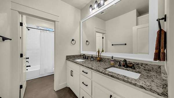 The kitchen boasts a large granite island, stainless steel appliances, a walk-in pantry, and a gas stove--perfect for cooking enthusiasts. The secondary bathroom includes dual sinks and a tub-shower combo, while the primary suite offers a freestanding soaking tub, separate shower, double vanities, and a walk-in closet.