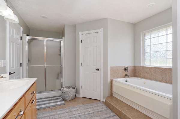 - Cathedral Ceiling(s), Jetted Tub, Laminate Counters, Tray Ceiling(s), Walk-In Closet(s), Walk-In Shower, w/ Hookup