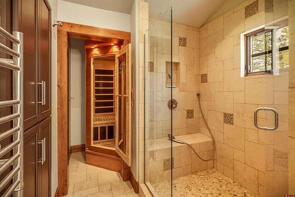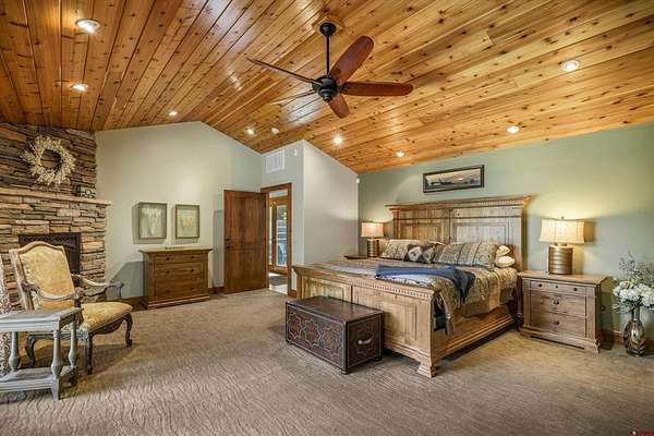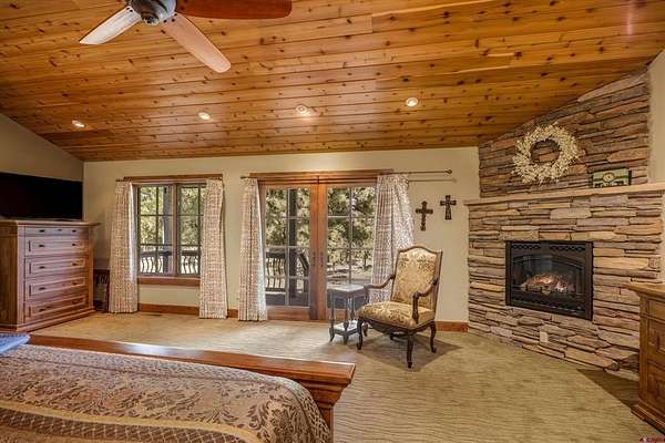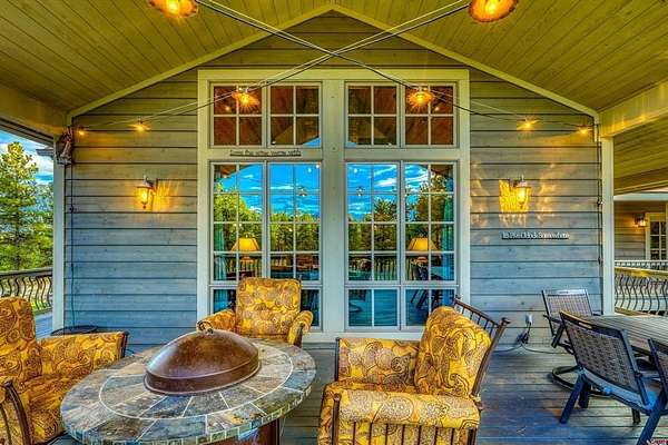 Lauri Heraty, ENGEL & VOLKERS Pagosa Springs, C: 970-946-7347, lauri@pagosarealestate.com, www.pagosarealestate.com: Stunning timber-frame mountain retreat with see-forever views of the north and east range of the San Juan Mountains. Perfectly positioned on 5 very private acres offering the ultimate Pagosa lifestyle for the outdoors-minded seeking refuge from city life.Step inside to soaring ceilings, exposed beams, and walls of glass framing the mountains in every direction. The dramatic double-sided fireplace anchors the great room and dining area, creating an inviting space to unwind with a glass of wine after a day of adventure. The kitchen has heated floors--cozy toes for cool Colorado mornings.The spacious primary suite offers its own fireplace, walk-in closet, and a luxurious bath complete with heated floors, air-massage tub overlooking the view, large walk-in shower, and dry sauna. Oversized guest bedrooms have stunning views--one with its own ensuite bath, huge closet, and a 12x19 flex space ideal for a playroom, nursery, office or easy off-season storage.Enjoy evenings around the wine bar recounting the day's activities, or step out to the covered deck with big views and a firepit for s'mores under the stars. Toward the back of the home, a 17x15 gathering room surrounded in windows currently serves as a dining space for vacation rental guests--but could easily transform into a large butler's pantry for entertaining, home gym, music studio, hobby room, dance studio or other creative space. Upstairs, a "crow's nest" retreat offers a fun hideaway for games, crafting, or an extra bunk area for visiting grandkids.Outdoors, the fenced grassy yard is perfect for pets or little ones, surrounded by low-maintenance xeriscaping and beautifully thinned pines for both privacy and view corridors. A full-size elk sculpture greets you as you arrive at this hilltop sanctuary. And don't forget to sit in the chairlift swing overlooking sunset vistas to the west. Gather around the rustic log firepit at day's end to share stories and mountain air.New furnace, tankless H2O, and AC, this home shows pride of ownership throughout. The office area or upper alcove could be made into a 4th bedroom, however, a septic improvement may be required. All this just 15 minutes from groceries, restaurants, medical services, Pagosa Springs Golf Course, the San Juan River, and the world-famous Pagosa Hot Springs--and only 30 minutes to Wolf Creek Ski Area. Commercial air service is just an hour away in Durango with multiple non-stop flights to Dallas, Houston (summer only for now), Denver or Phoenix. Fly directly into Stevens Field in Pagosa with its 8,100-foot runway accommodating most mid-sized jets.One step through the front door and you'll know you are home.