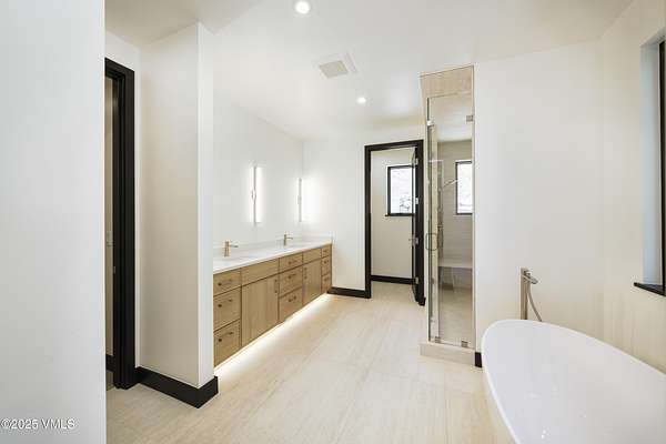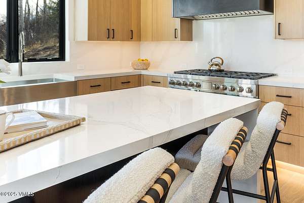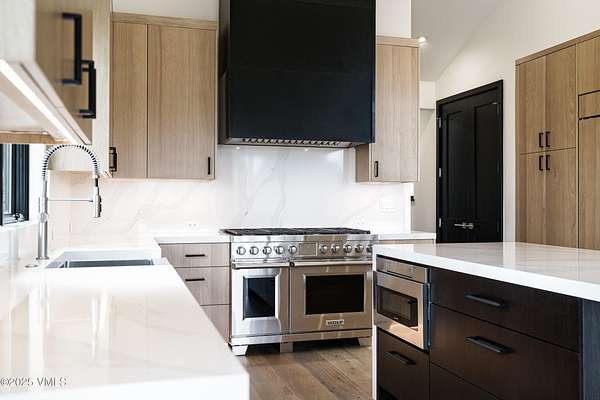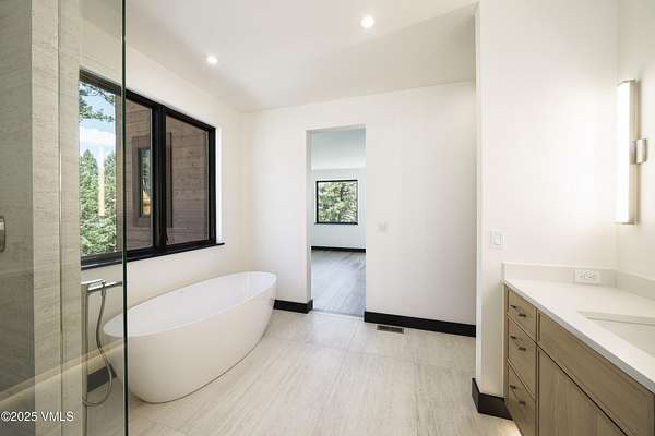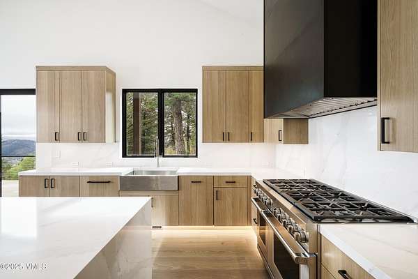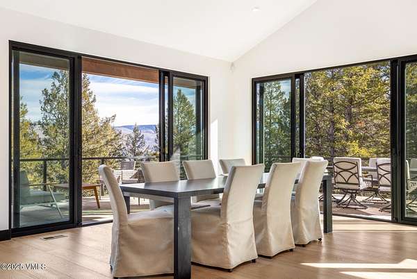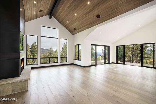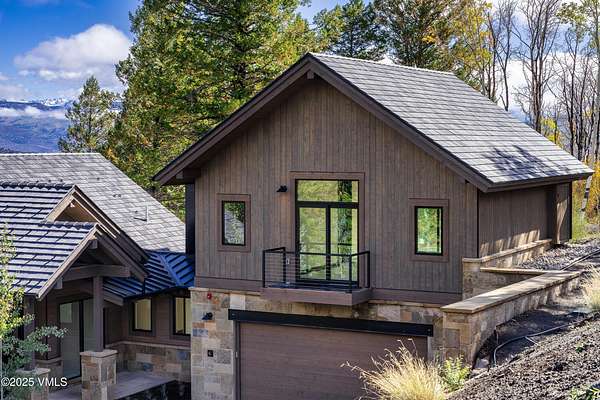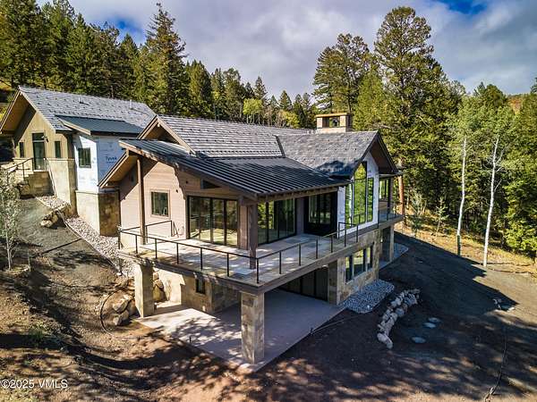 Nestled at the end of a long private driveway and surrounded by forest, this newly constructed mountain home offers the perfect balance of seclusion and community within the prestigious Cordillera Subdivision. Upon stepping into the home, you're greeted by an open-concept living area where serene luxury meets modern mountain design. Soaring windows flood the space with natural light and showcase breathtaking mountain views, while the sleek steel framed fireplace, exposed steel beams, and wood floors enhance this home's contemporary alpine ambience. The kitchen is a refined blend of warmth and modern style, featuring oak cabinetry accented with sleek black hardware, Wolf Subzero appliances, and a large island. Sliding glass doors off the dining room open to an expansive outdoor balcony perfect for entertaining or enjoying peaceful alpine evenings. The primary suite features a private balcony, a spa-inspired bath with a soaking tub beneath picture windows, a dual shower head system, and a spacious walk-in closet. An attached studio offers the perfect space for an office, yoga, or whatever your lifestyle may need. The homes upper level features a versatile bonus bedroom with a full bath, a private juliet balcony, and convenient access to the yard through an adjacent exterior door. The lower level offers three well-appointed bedrooms, each with its own en-suite bath, providing comfort and privacy for family or guest. This level also includes a spacious entertainment and living area, with sliding glass doors, that open to a secluded patio. While the home feels like a secluded mountain retreat, it is just minutes away from Cordillera's renowned golf courses and newly constructed state-of-the-art gym facility offering a full array of amenities including a pool, weight and cardio rooms, exercise classes, pickleball and tennis courts. Enjoy the perfect blend of privacy and connection in this luxury mountain home. Estimated completion August 2025.