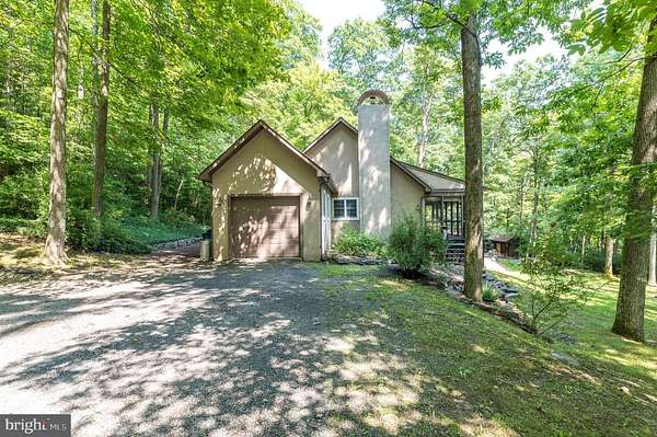 Located on a 92-acre private estate is this 2-bedroom home with an open floor plan, attached garage, full walk-out basement, and screened-in porch which overlooks a 2-acre pond. The home has one floor living with the master bedroom, full bath, laundry, kitchen and family room with vaulted ceiling and wood burning stove on the first level. Off of the family room is a screened-in porch that overlooks this extremely private and park-like setting. There is a second bedroom on the upper level and a full basement for all of your storage needs. Entering the property is magical as you traverse through the woods, cross the bridge which takes you over Rapp Creek and continue up the driveway to your home. The only sounds you will hear is what nature provides. The home has propane-forced hot air heat, wood stove, and central AC. Tenant is responsible for heat and electric. Landlord provides sewer, water, lawn maintenance, snow removal and trash. Note: House cannot be seen from the road. DO NOT enter the driveway without a realtor and and appointment - thank you.