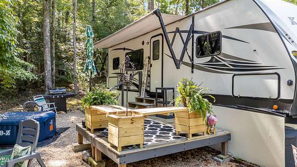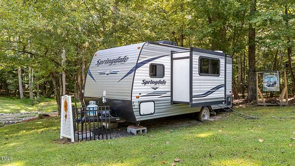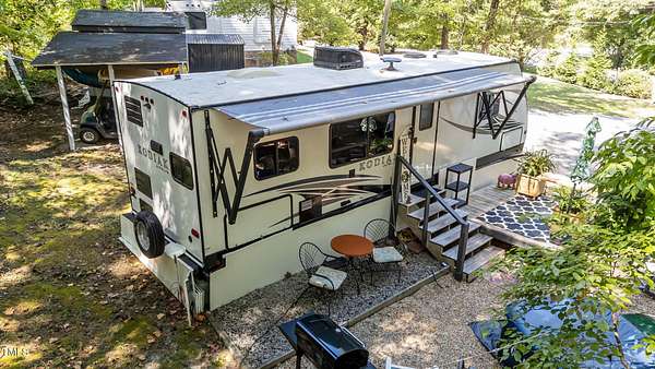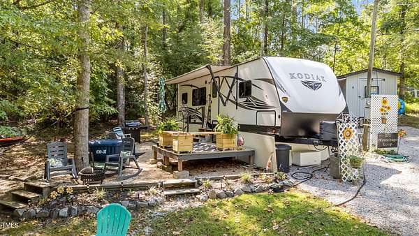 Golf Cart will convey with acceptable offer!! Discover a pristine 0.14-acre lot tucked away on a quiet private road within the gated resort-style community of Lake Royale. The property has been thoughtfully improved with not just one, but two campers. A spacious 2019 Keystone Kodiak (4 seasons camper), complete with its own septic system, serves as the primary retreat, offering a comfortable base for extended lake stays. Alongside it sits a 2019 Keystone Springdale, providing additional accommodations for family, friends, or guests. A detached storage building offers plenty of space for lake toys, fishing gear, and outdoor equipment, ensuring everything has its place and is ready when you are. With utilities already in place-including electricity (both 50 am and 30 amp service), water, and septic (2 bedroom)-this lot is completely turnkey, ready for your enjoyment from day one. Lake Royale is more than just a neighborhood-it's a lifestyle. Centered around a 345-acre lake and surrounded by over 3,000 acres of scenic woodland, this gated community offers endless opportunities for recreation and relaxation. Residents enjoy boating, fishing, and swimming, as well as access to sandy beaches, multiple boat launches, and docks. Amenities also include a swimming pool, tennis and basketball courts, volleyball, putt-putt golf, shuffleboard, horseshoe pits, and an outdoor fitness area. The lakeside clubhouse and open-air pavilion provide gathering spaces for community events and celebrations, while the nearby River Golf Course delivers a scenic 18-hole experience for golf enthusiasts. Life at Lake Royale is vibrant and welcoming, with activities from gardening and crafting to fitness groups and social gatherings. Located just 30 miles from downtown Raleigh, it offers the best of both worlds-peaceful lakeside living with convenient access to the Triangle's shopping, dining, and entertainment. With two modern campers, full utility hookups, and a detached storage building, this property is ready-made for lakeside living. Whether you're planning a weekend escape, entertaining guests, or envisioning a future homesite, 171 Winnebago Loop is your chance to embrace the resort-style lifestyle of Lake Royale.