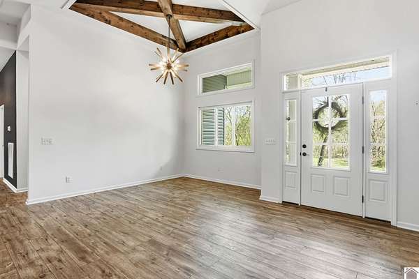 NEW LISTING! 171 Young Road Hickory, KY - $525,000 Welcome to your dream retreat! Nestled on 9.56 spacious acres, this stunning custom-built home offers the perfect blend of luxury, comfort, and peaceful country living. Featuring 4 spacious bedrooms and 2.5 baths, this home is thoughtfully designed with tall ceilings that create an open, airy feel throughout. The inviting living spaces are perfect for both everyday living and entertaining guests. The heart of the home flows seamlessly into a beautiful kitchen and living area, while large windows allow natural light to pour in and showcase the scenic surroundings. Step outside and enjoy your morning coffee or evening relaxation on the screened porch, overlooking your own private pond and expansive acreage. Whether you’re watching wildlife, fishing, or simply enjoying the view, this property offers unmatched tranquility. Plenty of room in the 3-car garage, providing ample space for vehicles, tools, and hobbies.