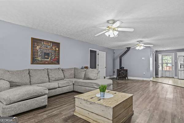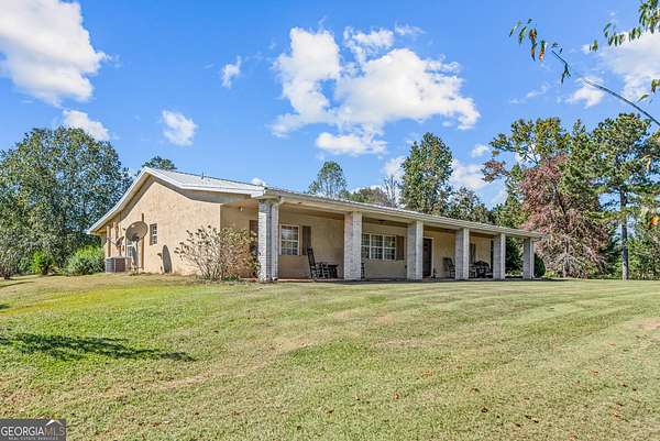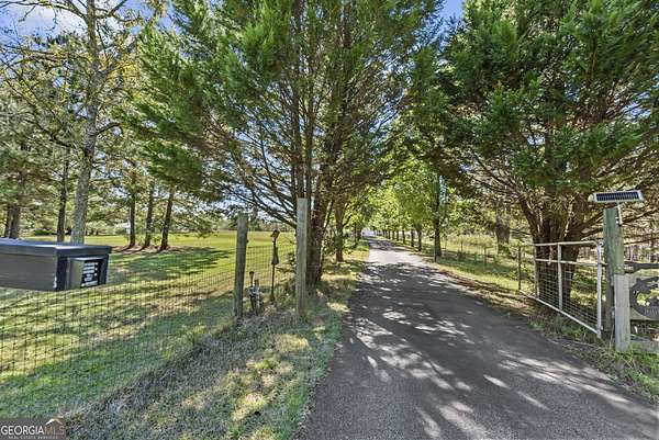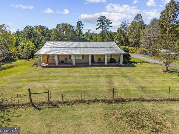 Tucked away from the noise of the world, this home is surrounded by seven peaceful acres that stretch out around you. Just inside, the living room centers around a wood-burning stove, and the kitchen showcases tile backsplash, stainless steel appliances, and ample cabinetry. The laundry room sits just off the kitchen and next to it is access to the back porch which is the perfect spot for morning coffee or watching the sun sink low behind the trees. This is a split bedroom plan with the primary suite on one side of the home. The primary includes his & hers closets, a jetted tub, a double vanity, and double doors that lead to the back porch. Down the hall are three additional bedrooms. Outside is where the fun happens! There's a playground set and an above-ground pool for summer splashes, and all the open ground you could want for a horse or two, a few cows, maybe even some chickens. Across the yard, the two-car detached garage comes with its own man cave/office that has a mini kitchen, additional bedroom, and a full bathroom. Here, you truly get the best of both worlds-serene country living with plenty of space to roam, while remaining just minutes from Madison Town Square, less than five miles from I-20, and conveniently close to Athens and UGA, all tucked away in a peaceful setting that still offers easy access to shopping, dining, and the small-town charm that makes Madison so special.