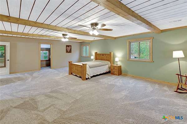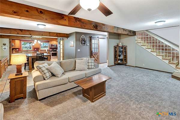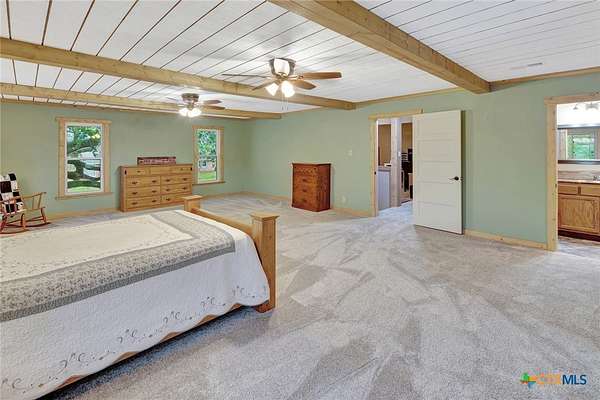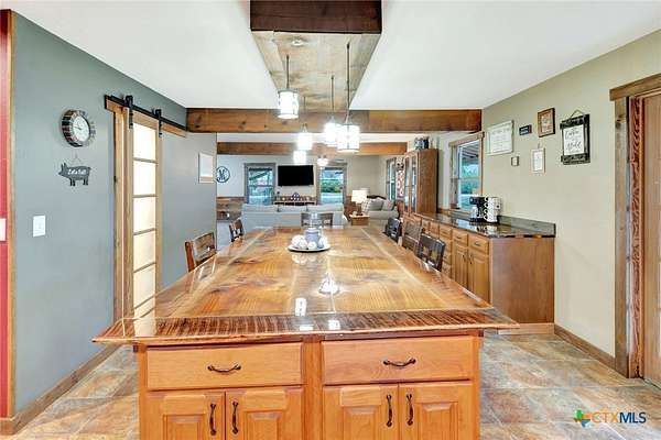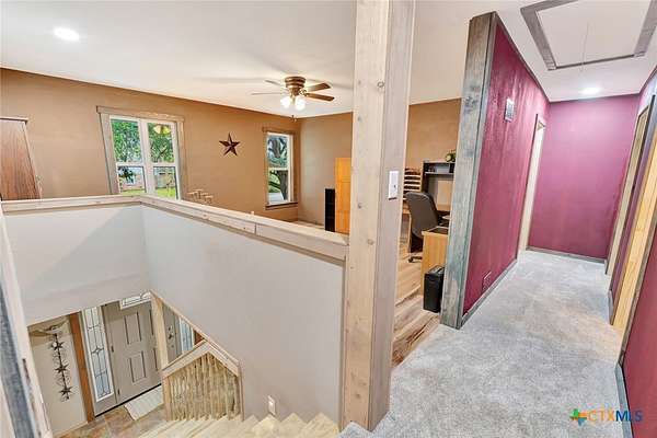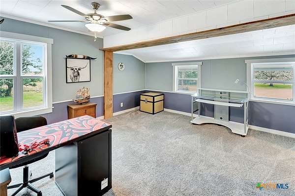 Well-appointed two-story farmhouse situated on 3.2 acres in Louise, Texas, just 12 minutes from downtown Ganado. This beautifully updated and meticulously maintained home features a spacious upstairs primary suite with a massive bedroom, walk-in closet, and private ensuite bath. Two additional bedrooms and a full bathroom are also located upstairs, along with a versatile office/loft area near the staircase. The main floor offers an open-concept kitchen, dining, and living area designed for everyday living and entertaining, with stunning sunset views overlooking a stocked half-acre pond. A game room on the main level provides flexible space-ideal for game nights, a pool table, or a hobby room. Property highlights include three water wells, geothermal central HVAC, a metal roof, a quarter-wrapped covered porch, a large barn, mature trees, and thoughtful updates throughout. A well-cared-for property offering efficiency, space, and peaceful country living.