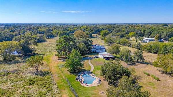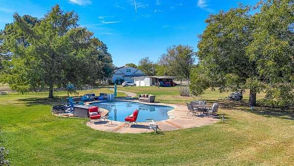 Step into this beautifully maintained farmhouse that perfectly combines timeless charm with modern comfort! Nestled on approximately 57 acres, this 3-bedroom, 2.5-bath home features gorgeous hardwood floors throughout, showcasing its enduring character. Spacious living areas offer a warm balance of coziness and functionality, while the elegant dining room is ideal for entertaining family and friends. The walk-in pantry adds extra convenience, and the stylish lighting throughout creates a welcoming, inviting ambiance. Two bathrooms feature classic clawfoot tubs, adding a touch of vintage luxury to your daily routine. Relax on the covered front porch, take a dip in the sparkling in-ground pool, and enjoy the serene countryside views. The property is fenced and cross-fenced, with mature native pecan and walnut trees, plus two tanks and wooded areas--perfect for recreation, privacy, and exploring the outdoors. This would also be an excellent opportunity for an unforgettable airbnb or wedding venue, which the property has been used for both. Located in the desirable Blooming Grove ISD and a mile from Navarro Mills Lake. This property is a true country gem offering endless opportunities including peaceful living, retirement, outdoor enjoyment or just a weekend home for the avid fisherman.