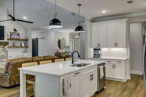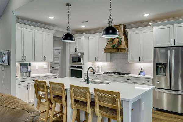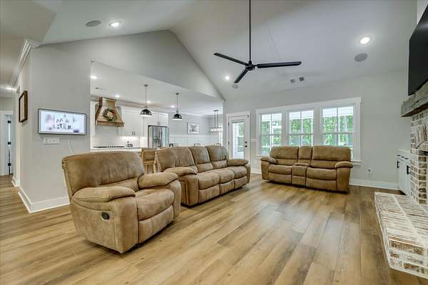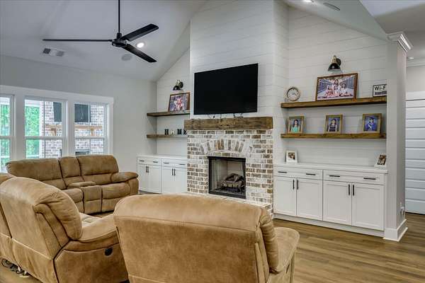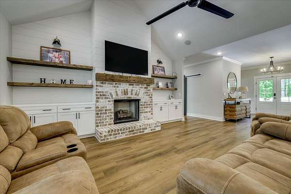 Tucked away on over three acres in highly sought-after Columbia County, this stunning property at 1710 Swint Road offers the perfect blend of space, style, and comfort. Step inside to find beautiful hardwood flooring throughout--no carpet anywhere--complementing the home's open and inviting floor plan. The spacious living area features built-in bookshelves flanking a cozy fireplace, creating a warm and functional centerpiece for everyday living and entertaining. The kitchen is a true showstopper, designed with both beauty and practicality in mind. Enjoy a large island perfect for gathering, Corian countertops, a farmhouse sink, custom tile backsplash, and stainless steel appliances--all seamlessly flowing into the main living space. This thoughtfully designed split floor plan provides privacy, with a dedicated home office ideal for working from home or managing day-to-day tasks. The oversized owner's suite is a true retreat, complete with a spa-like bathroom featuring a garden tub, custom tile shower with glass door, and elegant finishes throughout. Step outside to relax year-round on the screened-in back porch, complete with its own fireplace--perfect for quiet mornings or cozy evenings. The expansive lot offers endless possibilities, including a large storage building for all your tools, hobbies, or recreational needs. With gorgeous trim detail throughout and a setting that offers both privacy and convenience, this home is a rare find in Columbia County.