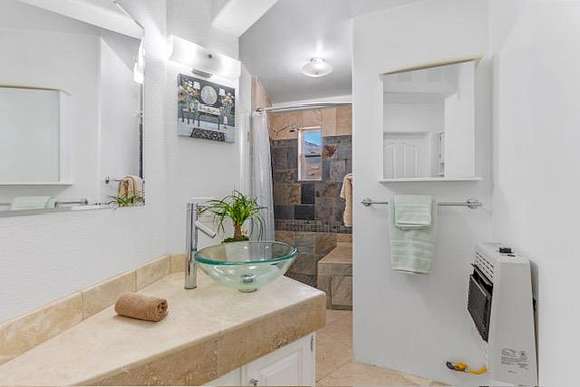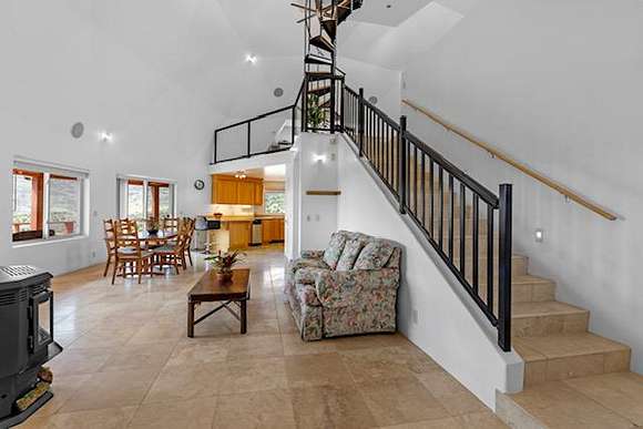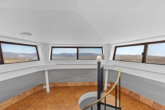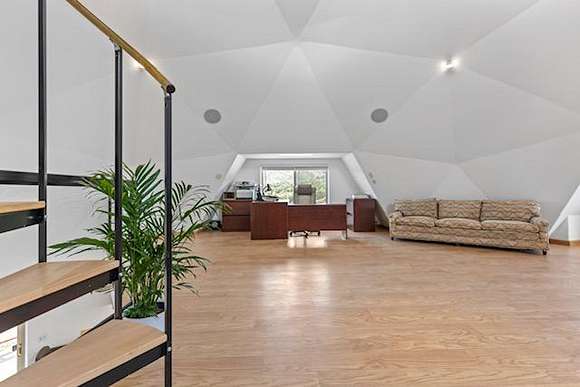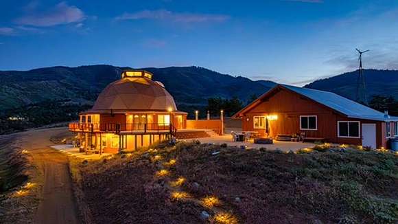 A highly efficient four level 3,500 sq ft dome home has 3 bedrooms and 4 1/2 bathrooms that uses very little heating in the winter and stays cool through the summer, is off grid but has all the conveniences of modern high end homes with its state of the art solar, wind and back up generator energy system that is automatic and seamless. The home is networked and has internet and satellite TV access, with a home theater room and music throughout the home. A spiral staircase takes you from the 3rd level to an all glass cupola that gives you a magnificent 360 degree view. The second floor has a large kitchen, master bed and bath with large hot tub, laundry and a spacious living and dining area, with a skeet shooting area on a wraparound deck that overlooks a large landscaped brick patio with fire pit, that can be used for large outdoor events. The ground level is a self contained 2 bed 2 bath unit with its own full kitchen and spacious living room. It has it's own private entrance and parking, with a large brick patio BBQ area that's landscaped throughout and is currently being used as an Airbnb short term rental.
