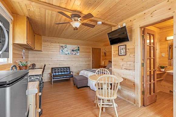 There is a campground nestled in oak and pine tree's, with 10 campsites and wood picnic tables that will accommodate vans, medium size RV's, tent trailers, tents and a log style glamping cabin, all with hot showers, custom built toilets, gas log fire pits and BBQ's. There is a community area with power and sinks, a nature and fitness trail that twists and winds through tree's around the property.