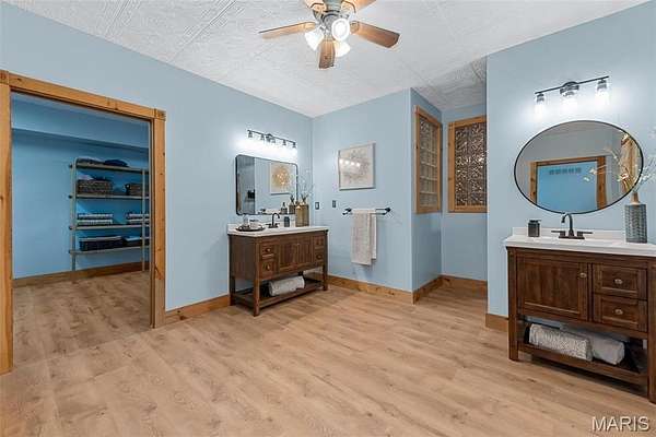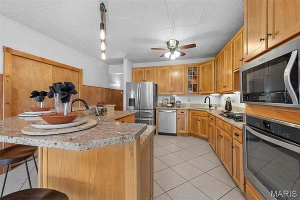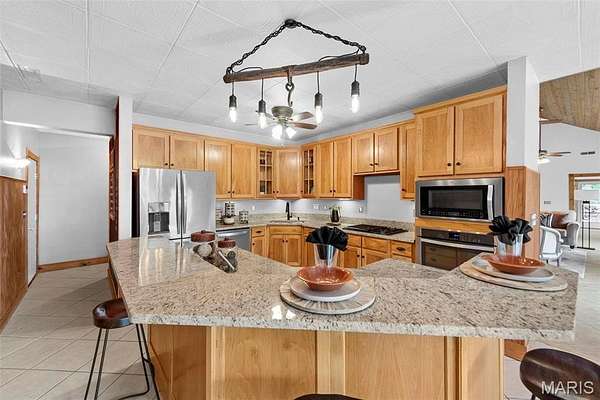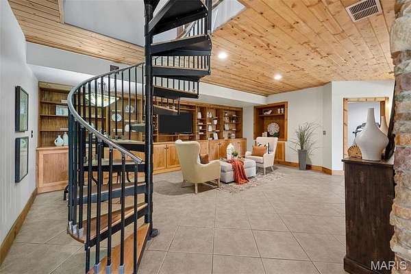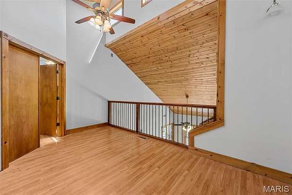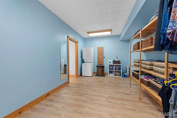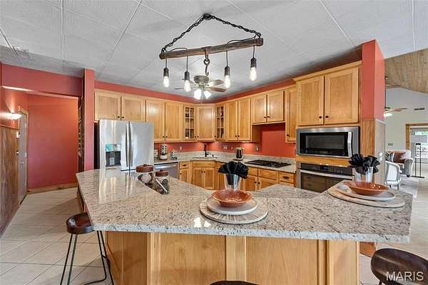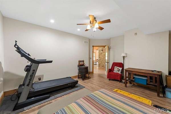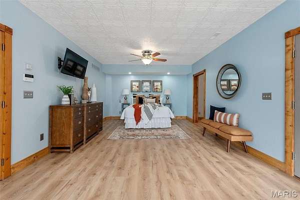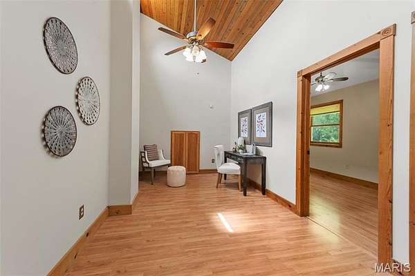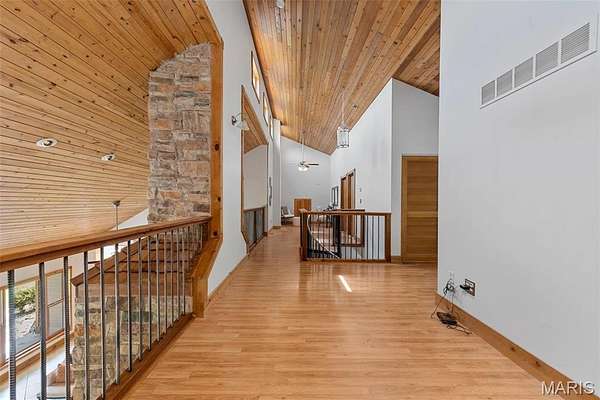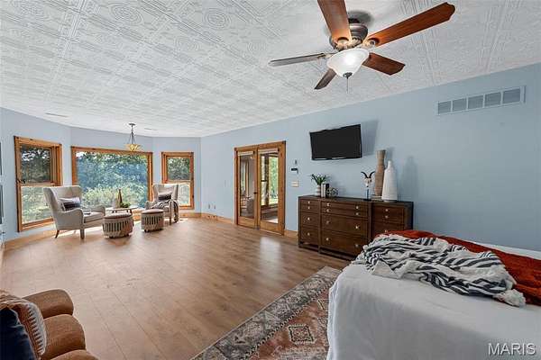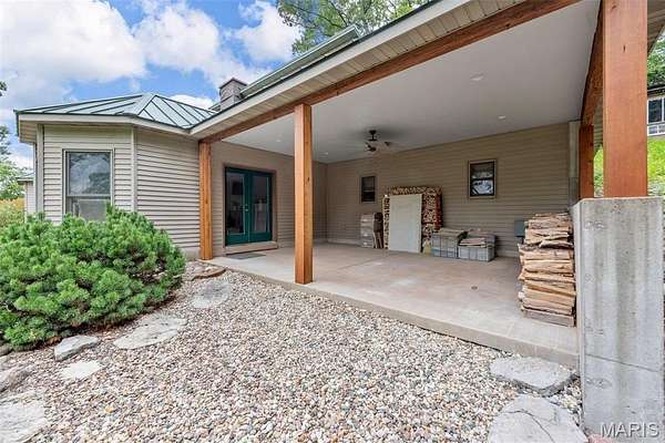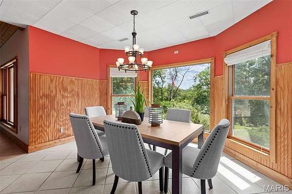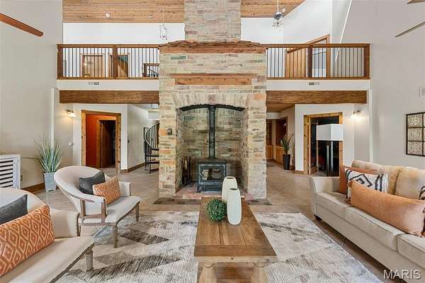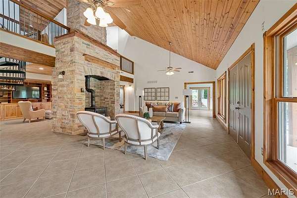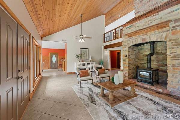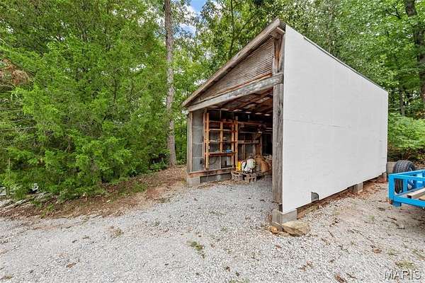NO HOA. NO FEES. NO RESTRICTIONS. LOW TAXES! Bring your RV, boat, chickens, and dreams--this private country estate is the perfect haven for hobby farmers, remote workers, and families seeking space, peace, and freedom. THIS IS A ONE OF A KIND PROPERTY! Tucked away on scenic acreage, enjoy breathtaking sunset views, abundant wildlife sightings, and total privacy, just minutes from modern conveniences. Inside, the dramatic two-story Great Room features soaring wood-beamed ceilings, a grand stone fireplace, custom built-ins, and a bar--ideal for entertaining or cozy nights in. The chef's kitchen offers stainless steel appliances, dual sinks, granite counters, and a breakfast room with panoramic views. The main-level suite includes a private sitting area, walk-out patio (hot tub ready), spa-style bath with walk-in shower, double vanities, and walk-in closet with laundry. Radiant heat floors on the main level ensure year-round comfort. Upstairs: 2-3 bedrooms, a loft/flex space, and second laundry. Outside: a charming bunkhouse, multiple storage sheds, and a versatile outbuilding--ideal for a chicken coop, art studio, or workshop. Enjoy birds, deer, and other wildlife in your backyard sanctuary. Just 5 minutes from Washington Regional Airport--perfect for weekend retreats! Close to 7 local wineries (5-15 min), local dining (7 min), New Melle (13 min), Washington (16 min), Lake St. Louis (27 min), and Lambert STL Airport (50 min). Tractor with blade for driveway included with sale!!!