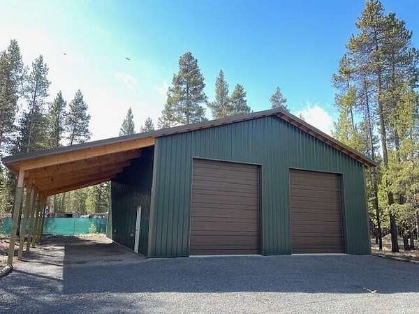 New Fully insulated shop with all the custom features needed for the best price. Fully insulated and wrapped, 8' OSB all the way around on the bottom. HUGE 16' overhang, High quality garage door openers. RV Plug, Welder plug, Extra Bright lights, Door out the back as well. Nicely situated on a half-acre lot with nice trees for privacy. The large driveway is great for getting your RV in or out as well as all the toys. The Large 16' overhang allows for plenty of additional space. 200-amp service with several outlets, Location is great and very close to the deeded boat ramp to throw the paddle boards in, or just enjoy the Big Deschutes River. Close to all the lakes, Mt Bachelor, and the amenities of Sunriver. Custom built large shop on recreational lot. 40x50.
