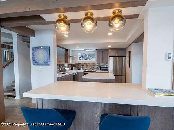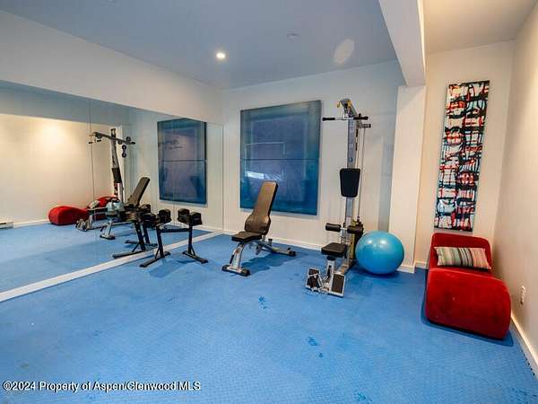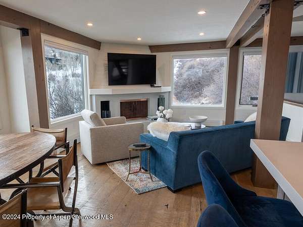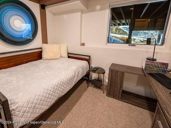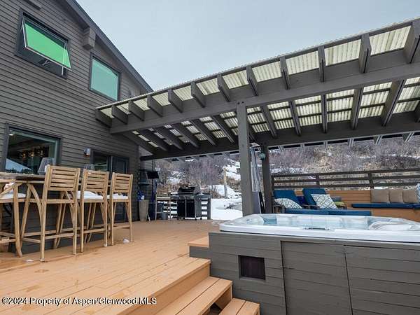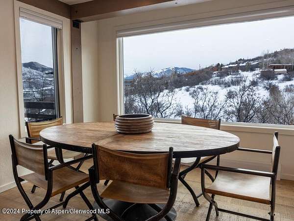 Indulge in the opulence of this exquisitely renovated 4-bedroom, 2-bath residence boasting breathtaking vistas of the majestic Elk Mountain Range, visible from the living room, kitchen, and primary bedroom. Step onto the expansive deck where luxurious outdoor living awaits, complete with a rejuvenating hot tub. Nestled on a sprawling 2+ acre parcel surrounded by green space in the prestigious Brush Creek locale, this property is adorned with the captivating artworks of esteemed artist Christopher Martin. Accompanied by a spacious 2-car garage and a state-of-the-art workout room, the kitchen boasts a gleaming new range for culinary enthusiasts. A flawlessly crafted fireplace sets a sophisticated tone, complemented by a grand 75'' flat screen TV, ensuring every moment is enjoyed in lavish comfort. This 1892 square foot home, recently remodeled to include plaster walls, offers a seamless blend of modern luxury and timeless elegance. As a unique offering, you have the opportunity to exchange the artwork for pieces of equal value at the Christopher Martin Gallery in Aspen, CO, adding an extra layer of bespoke luxury to this exceptional property.