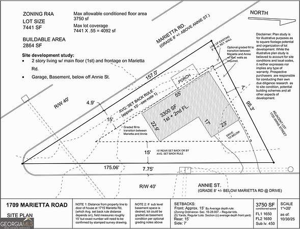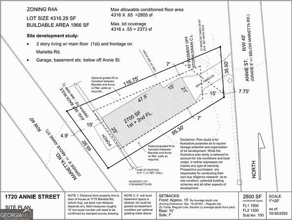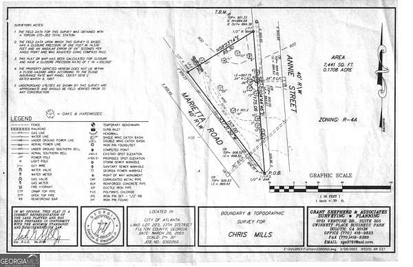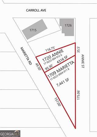 For builders: two adjacent lots to build and sell two homes in the desirable Hills Park neighborhood. For the family who wants to build their custom home, Here's your chance to build from scratch in the desirable Hills Park neighborhood! Claim these two adjacent lots (17-223-0004-012-6 & 17-223-0004-011-8) as your own and build an incredible dream home OR TWO. Take advantage of potential downtown views with a rooftop terrace. Easy access to Marietta Boulevard and nearby attractions via Carroll Drive, as well as the action along Chattahoochee Avenue, including dining and socializing at The Works. Right around the corner is Top Golf, shopping at Westside Market, and the ultimate in dining at Michelin-starred Bacchanalia. West Midtown and Atlantic Station are within easy reach, as are Midtown proper and Buckhead. Atlanta's largest greenspace, Shirley Park (aka Shirley Clarke Franklin Park) is just over a mile down Marietta ROAD. 1720 Annie - Lot Information: Zoning: R4-A Single Family, Area: 4,316 SF / .099 acre, Buildable area: approximately 1,966 SF, Maximum lot coverage: 2,373 SF, Maximum allowable floor area: 2,805 SF, Front yard setback: Approximately 15' (average depth front yard setback rule), Rear yard setback: 15', Side yard setback: 7'. See site plan and survey. 1709 Marietta - Lot Information: Zoning: R4-A Single Family, Area: 7,441 SF / .170 acre, Buildable area: approximately 2,800 SF, Maximum lot coverage: 4,092 SF, Maximum allowable floor area: 3,750 SF, Front yard setback: Approximately 15' (average depth front yard setback rule), Rear yard setback: 15', Side yard setback: 7'. See site plan and survey.