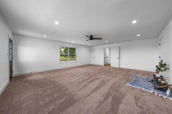 Outside, enjoy 5.788 acres dotted with mature shade trees, open grassy areas, and plenty of space for livestock, gardening, or simply stretching out under Texas skies. With RV or boat parking and no restrictions or HOA, the possibilities are endless.