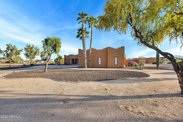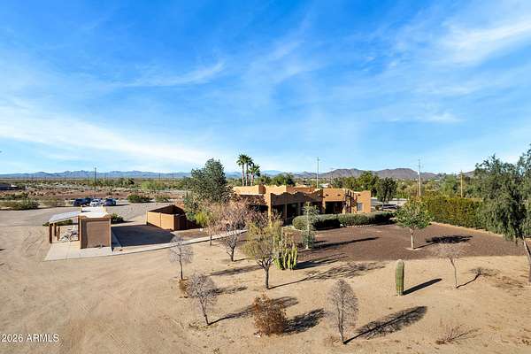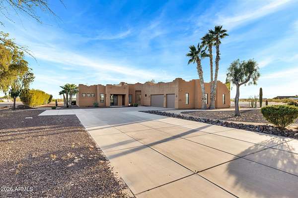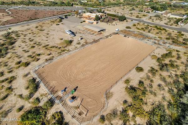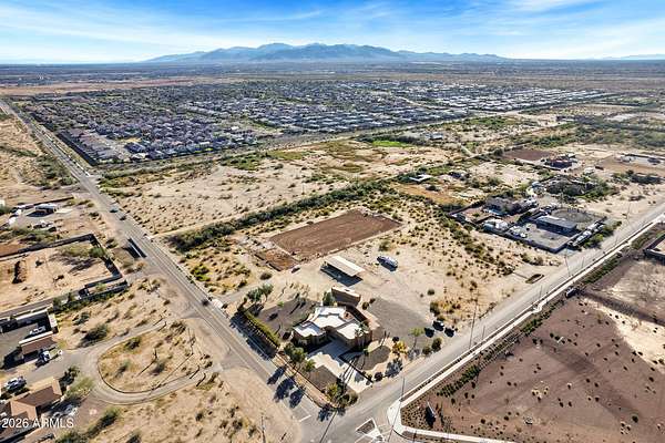 Set on over 7 acres across five separate parcels, this rare horse property in Surprise offers both an exceptional equestrian lifestyle and a compelling future redevelopment opportunity. Directly adjacent to new-build communities and surrounded by other horse properties, the location provides a unique blend of privacy, open land, and long-term upside. This residence features an electric fireplace, an oversized garage, and a rooftop deck ideal for taking in desert sunsets and panoramic surroundings. The property is fully equipped for equestrian use with a horse arena, stables, and RV hookup, along with a custom detached tack room offering excellent flexibility for equipment and hobbies. Whether you're an owner-user seeking space for horses and toys, or an investor looking to capitalize on a growing corridor, this property presents a rare opportunity to secure acreage in a rapidly growing area while enjoying immediate functionality and future potential.