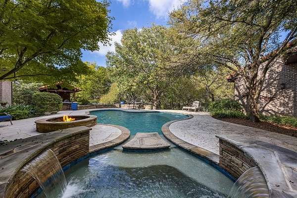 Welcome to 1712 Bison Meadow Lane, a Mediterranean masterpiece tucked away in the heart of Heath's most coveted enclave. This exquisite estate blends timeless architecture with modern sophistication, surrounded by lush, forested privacy on two serene acres. Inside, elegance meets functionality--soaring beamed ceilings, herringbone hardwoods, and a grand rotunda entry create a breathtaking first impression. The gourmet kitchen is a chef's dream with premium appliances, a warming drawer, and seamless flow to multiple entertaining spaces, including a full bar with wine fridge. Enjoy morning espresso from one of two built-in Miele coffee machines--one in the study and another in the primary suite. Designed for multi-generational living, the home features two primary suites, one on each floor, connected by a private elevator. Upstairs offers its own living area, kitchenette, and balcony overlooking the resort-style grounds. Outdoors, paradise awaits--an ultra-private pool, spa, and cabana are nestled within a natural canopy of trees, creating an unmatched retreat. The estate's fruit orchard, active stream, and outdoor kitchen make it ideal for entertaining or peaceful relaxation. With a 4-car garage, multiple living areas, and endless custom details, this home is a rare blend of luxury and livability. Experience the ultimate in privacy, comfort, and refined Texas living--minutes from shopping, dining, outdoor recreation, hospitals, schools, and golf.