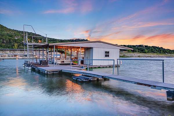 Beyond the patio, your private estate unfolds, gated playscape for the kids, acres of land to roam and ride -- whether it's four-wheelers, dirt bikes, or just bare feet in the grass. Fish off the shoreline, explore nature trails, or climb up to the boat dock platform and cannonball into the lake like we used to when we were kids. With a boat slip and two jet ski lifts, the water is always just steps away. This is where you spend weekends paddleboarding, towing the kids on a tube behind the boat, and gathering around a firepit after a full day outdoors. Where birthdays turn into pool parties, lazy Sundays turn into lake adventures, and the driveway has space for all the friends and family who want to come join in and the best part? You don't have to travel far to feel like you've escaped it all. This home is a getaway, every day -- close to the city, but a lifestyle apart. Whether you're looking for a full-time residence or the ultimate weekend retreat, this Jonestown property delivers space, privacy, and that unmistakable feeling of freedom we remember from childhood. Information is deemed reliable but not guaranteed. Buyer to verify.