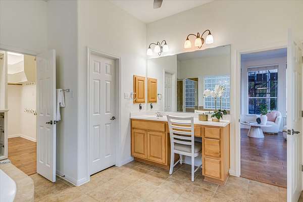 - Bookcases, Built-In Features, Ceiling Fan(s), Chandelier, Entrance Foyer, Granite Counters, High Speed Internet, Kitchen Island, Master Downstairs, Open Floorplan, Pantry, Soaking Tub, Walk-In Closet(s)