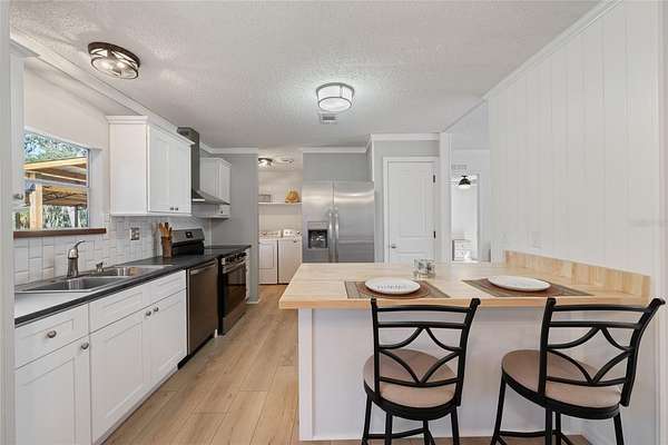 This NEWLY UPDATED, 1248 sq ft home has been Freshly Painted and Tastefully Renovated and is ready for you to make it your own. Recent Updates Include: *NEW* SS Kitchen Appliances (Never Used!) *NEW* White Solid Wood Kitchen Cabinetry with SOFT CLOSE Drawers/Doors. *NEW* Custom Butcher Block Island w/ Additional Lower Cabinetry. *NEW* Vinyl Plank Flooring Throughout! *NEW* Carpet in Primary Bedroom. *NEW* Master Shower & Vanity. *NEW* Plumbing Fixtures. *NEW* Guest Bath Vanity. *NEW* Front Entry and Storm Doors. All this and being sold PARTIALLY FURNISHED TOO! All bedrooms have walk-in closets. Inside Laundry Room with Maytag Washer/Dryer Included adds to the functionality and comfort of this home.