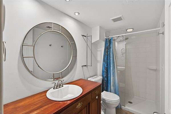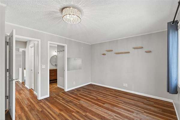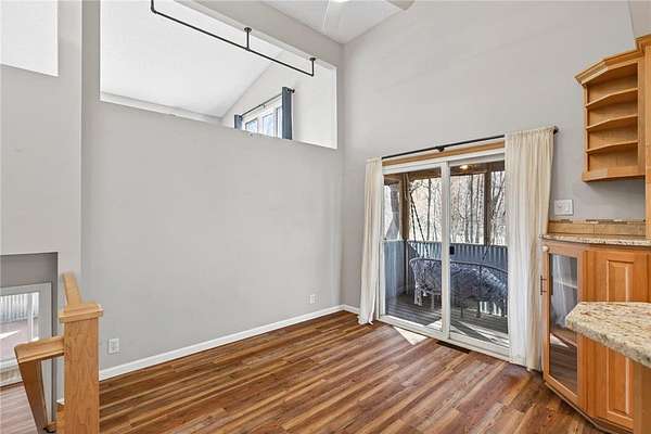 The upper-level living room is filled with natural light and walks out to a huge deck. The primary suite includes a walk-in closet and a bath walk-through for added convenience.
