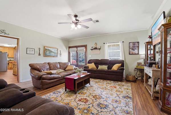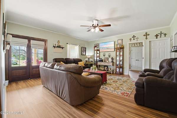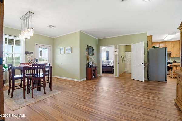Welcome to peaceful country living in Mermentau Cove! Situated on 10 beautiful acres and located on a quiet dead-end road, this well-maintained, one-owner home offers the space, privacy, and lifestyle that's increasingly hard to find. Built in 2005 by the current owner, this 3-bedroom, 2-bath home with an additional office features approximately 1,800 square feet of living space and a total of 3,060 square feet under roof. Pride of ownership shows throughout, with consistent maintenance and care over the years. Enjoy quiet mornings and wide-open views from the expansive 8x60 front porch, perfect for coffee and relaxing in a true country setting. The home is fully electric and equipped with two A/C units for efficient cooling. The exterior setup adds both function and flexibility. You'll find 760 square feet of covered parking at the rear of the home, along with a 16x20 shop (32x20 including wings) and an additional open equipment shed, ideal for storage, equipment, or hobbies. The 10-acre tract provides ample space for recreation, animals, or future improvements, all while maintaining privacy and a peaceful environment. If you've been looking for a well-kept home with acreage in a quiet rural setting, this property offers a strong combination of condition, land, and usability. Schedule your private showing to experience everything this property has to offer.