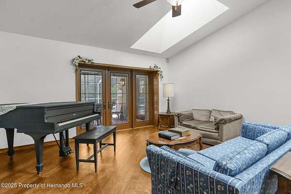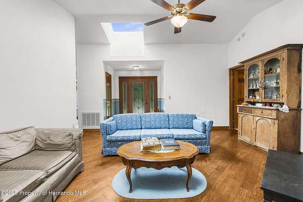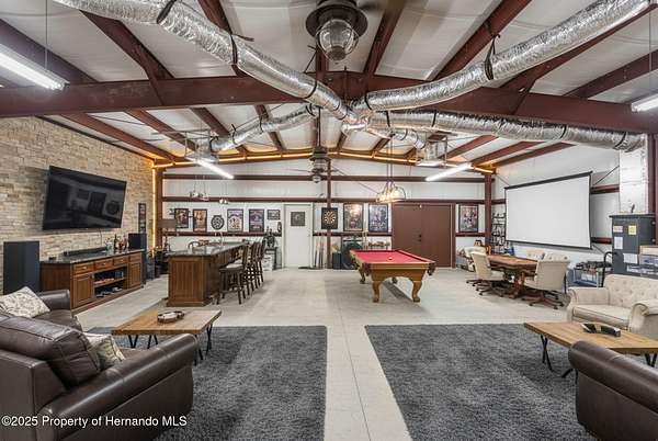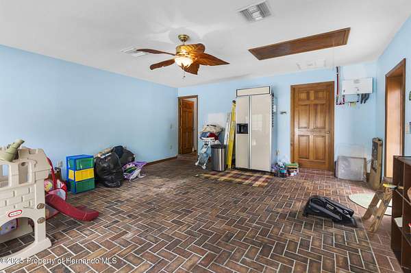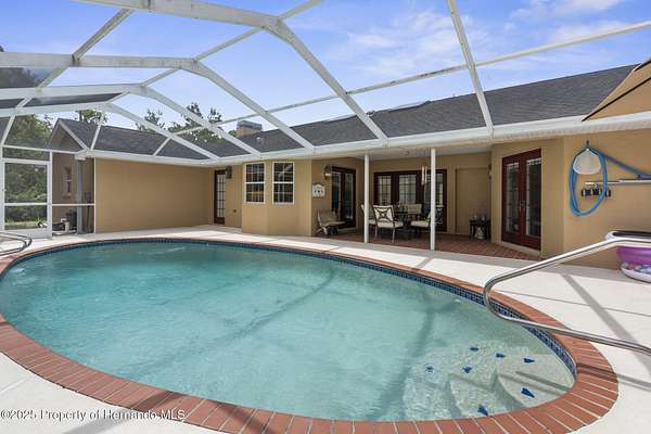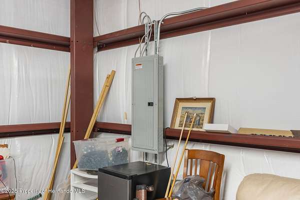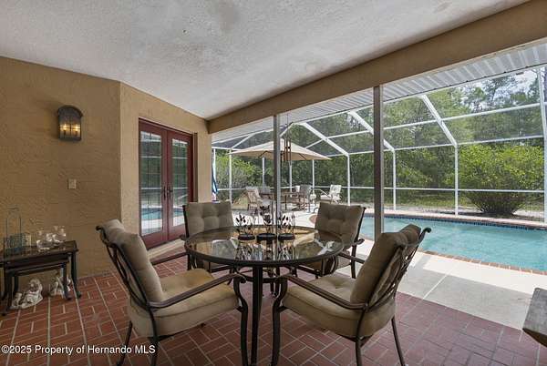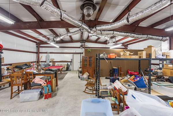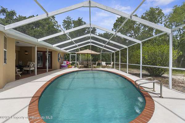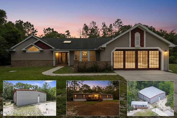 One or more photo(s) has been virtually staged. PRIVATE 5-ACRE MULTI-FAMILY COMPOUND WITH POOL, COMMERCIAL-GRADE WORKSHOP & HORSE-FRIENDLY ZONING! This rare multi-generational property offers TWO SEPARATE PARCELS totaling 5 ACRES in a PRIVATE & SECLUDED setting on the Pasco/Hernando County line, just minutes from the Suncoast Parkway for an easy commute. With NO HOA, this fully fenced estate with ELECTRIC GATE is ideal for horses, livestock, and COUNTRY LIVING while keeping modern conveniences close by. This 4-acre parcel features a beautifully maintained main residence offering 3 BEDROOMS 3 BATHROOMS PLUS FLEX ROOM/ 4th BEDROOM with original SOLID OAK TRIM and SOLID OAK DOORS throughout, SOLID OAK FRENCH DOORS with BUILT IN BLINDS, and gorgeous REAL HARDWOOD FLOORS. The newly renovated kitchen offers GRANITE countertops, abundant cabinetry and counter space, a DOUBLE OVEN, custom recessed lighting, and a brick terra-cotta tile floor and a breakfast bar overlooking a cozy family room featuring a WOOD BURNING BRICK FIREPLACE with a hearty oak mantle. The living spaces are filled with NATURAL LIGHT from both Bay windows and dramatic SKYLIGHTS in the FORMAL LIVING ROOM, FORMAL DINING ROOM and BREAKFAST NOOK, which leads out to the SCREENED POOL and LANAI. The spacious primary suite includes an ONSUITE perfect for a HOME OFFICE/FLEX SPACE and a SPA LIKE BATHROOM with DUAL VANITY, GRANITE COUNTERS, a GARDEN TUB, separate shower, and private water closet. Additional features include a LARGE LAUNDRY ROOM/MUD ROOM with a window, and a TANKLESS HOT WATER HEATER. The garage was converted to a FLEX ROOM/4th BEDROOM with a stunning wall of OAK FRENCH DOORS with built-in blinds to match the others throughout. The SCREENED LANAI overlooks the serene acreage and offers multiple seating areas for entertaining or relaxing. The detached 40x40 RED IRON NUCOR STEEL FULLY INSULATED COMMERCIAL GRADE WAREHOUSE, is complete with its own 200 AMP electrical panel with plenty of room for additional circuit breakers, 2.5-ton HVAC, ceiling fans, lighting, and enclosed room. Perfect for tradesmen, mechanics, woodworking, or a business, it includes hardware to convert the entry to a garage door if desired. A large, detached shed provides additional storage. THIS IS A MULTI-PARCEL SALE including the 1 ACRE parcel - 5BR/3BA Manufactured Home built in 2019 which offers 2,128 square feet featuring an OPEN FLOOR PLAN, large kitchen with KITCHEN ISLAND, spacious LAUNDRY ROOM/MUDROOM/STORAGE ROOM. The primary suite includes a GARDEN TUB, DUAL SINKS, and a separate shower, and Walkin Closet. The split plan offers privacy and generously sized bedrooms, large closets, and a front DECK make this a perfect GUEST HOUSE or MULTIGENERATIONAL living option. This UNIQUE PROPERTY delivers the perfect blend of PRIVACY, and rural charm while still being close to shopping, dining, and major highways. Whether you're seeking a FAMILY COMPOUND, or income-producing investment, this estate offers it all. Schedule your private tour today and experience the endless possibilities! Price reflects the total of both parcels combined. Parcels will NOT be sold separately and must close together under one contract.