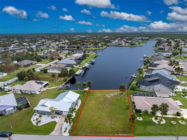 Est $1,734/moAerial & drone video available! Build your dream home on this stunning waterfront lot in Port Charlotte, FL! Enjoy sailboat access to the Gulf--no fixed bridges, just minutes away. This cleared, leveled lot features a new seawall (2022), plus city water, sewer, and high-speed internet--no HOA, septic, or well needed.