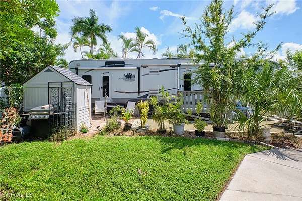 LOW FEES ONLY $2,480 A YEAR!!! CORNER LOT in America Outdoors 55+ community at an Unbeatable Price! Located in a highly sought-after Gulf Access Gated community. Ownership of the land provides a sense of permanence, low taxes and low HOA fees. This corner lot features a concrete parking pad, lawn area and storage shed. The community offers boat and trailer storage, making it simple to keep your recreational equipment ready for use. In addition to these fantastic features, America Outdoors offers a range of amenities designed to enhance your lifestyle. Take a dip in the large sparkling pool, unwind in the hot tub, or engage in friendly competition on the bocce ball or shuffleboard courts. Seasonal activities and a vibrant community spirit ensure there's always something to do. An outdoor storage shed is included. The easy access to RSW Fort Myers and Punta Gorda airports, along with proximity to beaches, ensures you can take full advantage of the sun, fun, and relaxation that Southwest Florida has to offer. Don't miss out on this exceptional opportunity to own a lot in paradise in one of Florida's premier 55+ communities. 2 Pets allowed with no weight limit. RV not included.