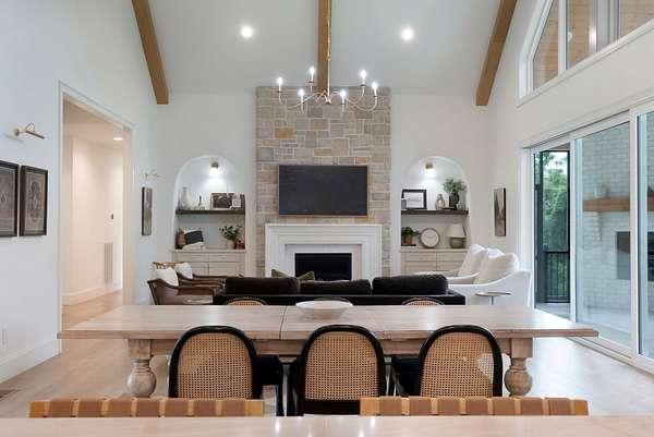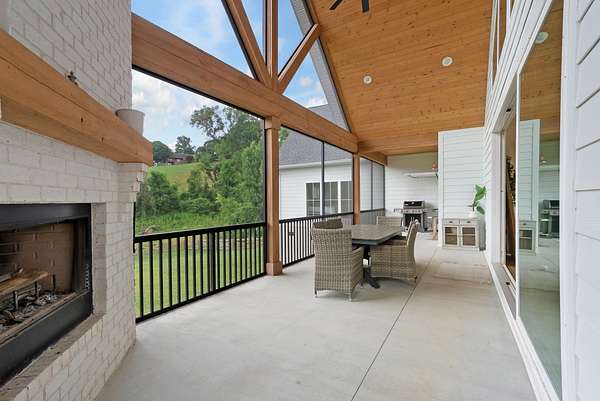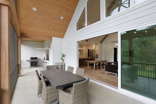 This unicorn property features the 3700 sq ft main house which was uniquely crafted by Refuge Design Co. This home was thoughtfully designed for both style and function and loaded with high end finishes. Featuring 4 bedrooms, 4.5 baths, a private office, and a spacious bonus room plus a playroom/5th bedroom, the home is filled with custom details. Designer finishes include all natural stone counters with matching slab backsplash, custom cabinetry, indoor and outdoor fireplaces and a flip-out bar window ideal for entertaining. A dramatic 15' collapsible glass wall opens seamlessly to a huge screened porch, blending indoor and outdoor living. Enjoy the back porch or large front porch and take in the open rolling pasture views.