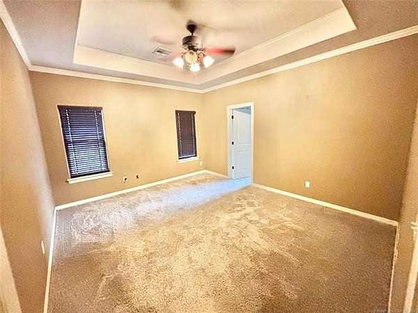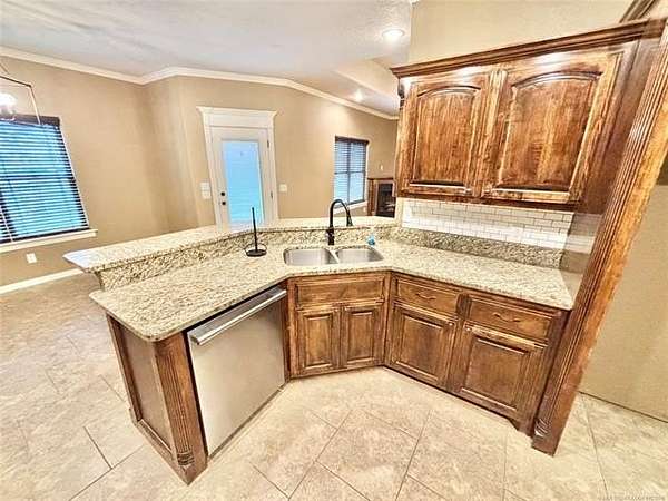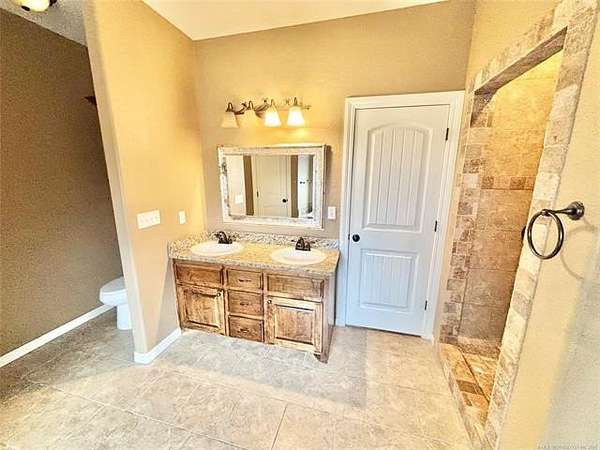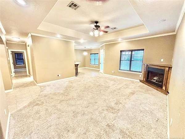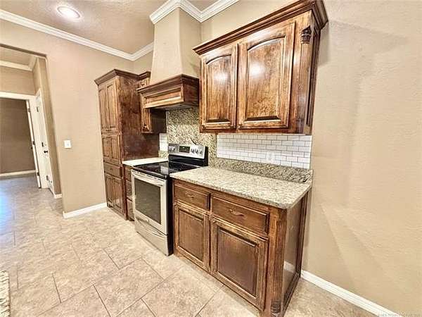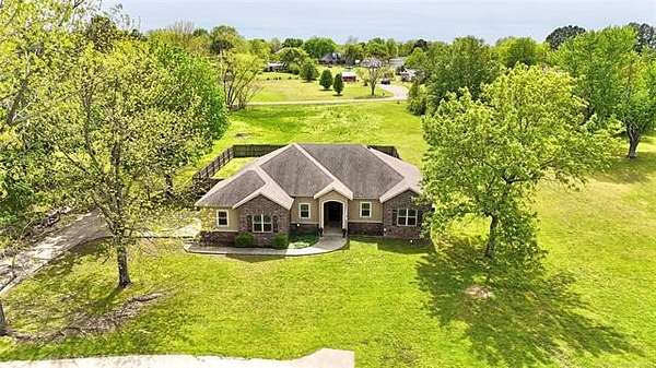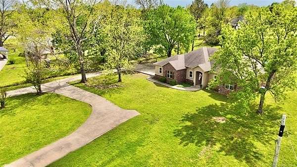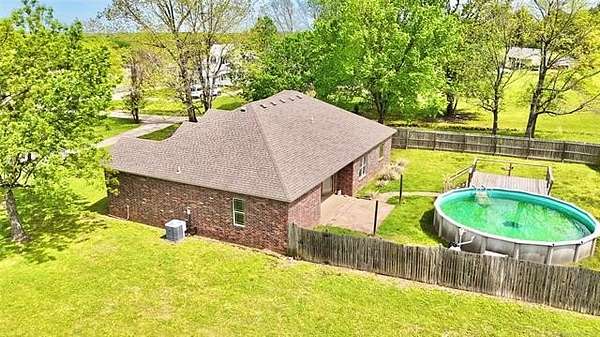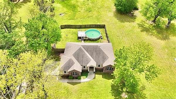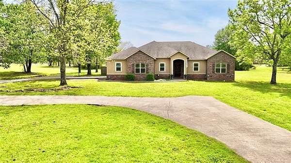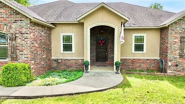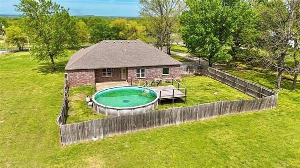 Situated on 2.1 acres, this beautiful one-owner, custom-built home in Stigler, Oklahoma is located just minutes from Lake John Wells and truly screams luxury from the moment you arrive. The circular drive and stunning stucco and brick exterior create incredible curb appeal. Inside, you're welcomed by an inviting entry with a flex room or office immediately to the right, leading into a spacious open-concept living area complete with a gas fireplace - perfect for both everyday living and entertaining. The kitchen features granite countertops, custom cabinetry, stainless steel appliances, and a convenient walk-in pantry just off the kitchen. A generously sized utility room provides additional storage and workspace. Two bedrooms are located on one side of the home, both offering walk-in closets, with one featuring vaulted ceilings, and they share a full bathroom. On the opposite side of the home, the private primary suite is a true retreat with elegant tray ceilings, his-and-her closets, a walk-in shower, and a relaxing Jacuzzi tub. Outside, enjoy your own backyard oasis with an above-ground pool, an expansive deck, and a privacy fence - ideal for summer entertaining or peaceful evenings. A side-entry two-car garage adds convenience and functionality. This exceptional property offers privacy, space, and upscale features throughout - all sitting on a hard-to-find 2.1 acres, making it a rare and desirable opportunity.
