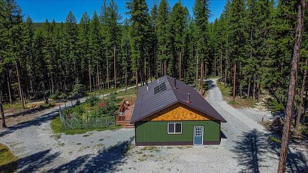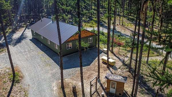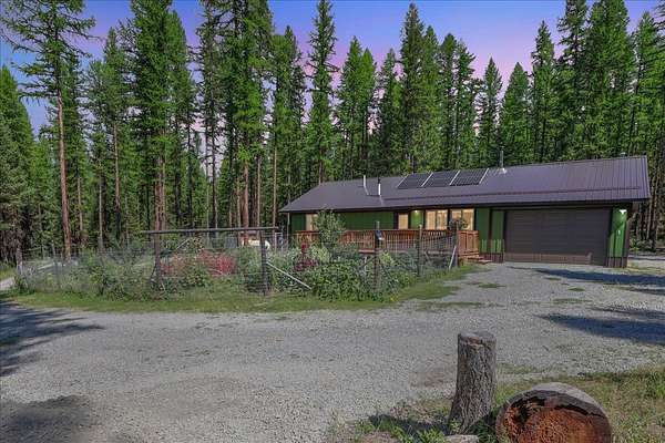 Experience true Montana living where off-grid convenience meets hand crafted quality. Tucked in the rolling hills & bordered on two sides by thousands of acres of Forest Service land, this 20-acre retreat offers both privacy & endless recreation. A truly one-of-a-kind property, the acreage boasts scenic rock outcroppings & gentle terrain filled with trails for hiking, horseback riding, & ATVs. The best of Montana is right out your back door! Come explore the towering forest & find a charming treehouse perched among the fir & larch trees. Step inside to a home designed for comfort & character, featuring hickory floors, handcrafted burnt woodwork, & a striking tile backsplash. Modern systems make off-grid living effortless with an inverter, battery bank, generator, propane range & heaters, on-demand hot water, & a cozy wood stove. Grid power is available just 600' away at the shop for those who prefer to stay connected. Supporting a self-sufficient lifestyle, the property includes an 18x20 wood shed stocked with firewood, an 18x30 heated garage with an 8'x14' door, and a 21x40 shop with an 10'x10' door, complete with a workbench and shelving. Outside, the homestead features a chicken coop and run with solar electric fencing alongside an established orchard of apple, pear and plum trees. Nearby, the newly-constructed greenhouse and raised garden beds within a protective fence provide the perfect growing space for garden enthusiasts. The new wood-fired hot tub and fire pit area provide the ultimate setting for relaxation. With build restrictions on the neighboring property, you'll enjoy maximum privacy for generations to come. Whether you envision a recreational retreat, a full-time homestead, or a secluded getaway, this property offers the perfect balance of comfort, beauty, and independence.