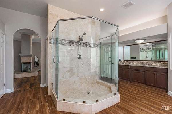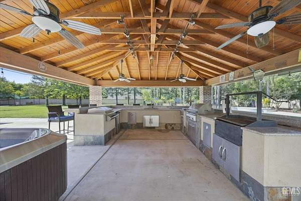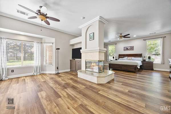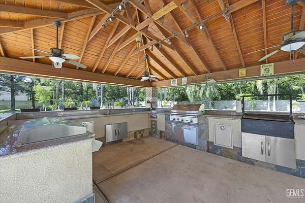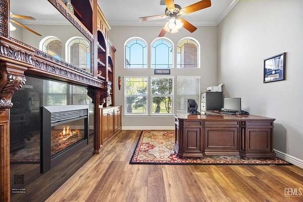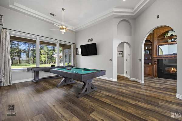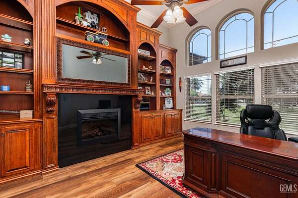 Welcome to Landmark Estates, where space, privacy, and versatility define this exceptional 2+ acre horse property. This 4,627sf estate offers 5 bedrooms and 4 bathrooms. Amenities include a massive 3,456sf shop, OWNED solar, a barn/coop, and a guest house with 2-car garage. Designed for entertaining, enjoy a grand entry, formal living and dining rooms, and a family room with a striking floor-to-ceiling brick fireplace and a built-in bar. The chef's kitchen features a commercial grade KitchenAid range and built-in fridge, custom walk-in pantry, dual sinks and an oversized island. An executive office with built-in paneling, cabinets and a fireplace provides a refined workspace. Outdoors, a private resort awaits with pool, expansive grounds, and an entertainment pavilion with outdoor kitchen and spa. A rare opportunity for true estate living with room for animals, recreation, or business use!