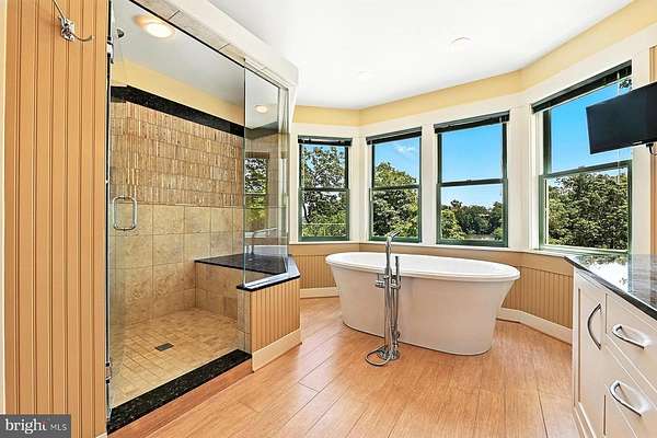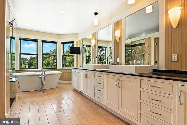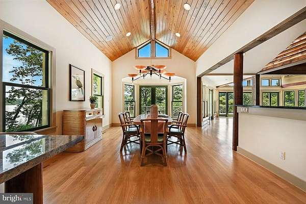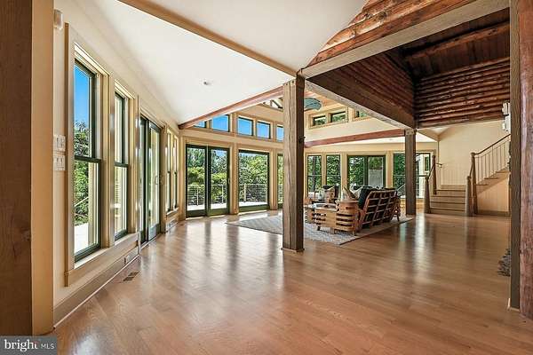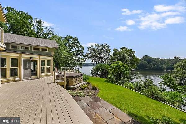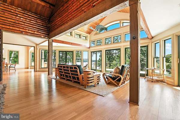 Ideally situated on the banks of Luce Creek with sweeping views down the Severn River, 1715 Porters Hill Road is a unique heritage property with over a century of history. Set on a 1.7 acre lot with 265 ft of waterfrontage, the property includes a large, hard-to-find boathouse that provides both charm and utility for all your waterfront adventures. The private pier has 7+ ft water depth and can accommodate a large vessel as well as an assortment of smaller boats. The tram makes access to the water effortless, and the entire property enjoys an exceptional privacy. Steeped in its storied past yet thoughtfully updated for modern living, this retreat captures the perfect balance of historic charm and casual elegance. The heart of the home is a sunlit great room with original log walls and quarried stone fireplace, a vaulted ceiling, and expansive windows which frame water views at every turn. An adjoining den, with separate entrance option, is a perfect place to relax. This could easily become another main level bedroom with ensuite bathroom. The kitchen is striking under its vaulted ceiling accented by exposed beams. The custom cabinetry, GE Monogram stainless steel appliances and generous island give the space so much functionality while maintaining the artisanal character. The kitchen opens to the dining area overlooking the water. The table is anchored by a craftsman-style light fixture, and the entire first and second floors have beautiful wood floors. Step outside and you're embraced by nature: multiple porches and decks overlook lush, manicured grounds that lead down to the water's edge. The main-level primary suite is a true sanctuary, designed for privacy and tranquility. The bedroom, with a vaulted ceiling, has a screened porch overlooking the water. Two expansive walk-in closets offer custom organization systems that would make a clothing connoisseur smile. The spa-like bathroom gets lots of natural light from the windows that frame the water, and the freestanding soaking tub is situated to enjoy this view. A dual-sink vanity, heated floors, generous walk-in shower with a built-in bench, and a spacious cosmetic area with dedicated seating make getting ready feel effortless and luxurious. A dedicated laundry area just off the hallway makes day-to-day living very easy. Part of the primary suite is a gracious office with gas fireplace and outdoor access. This is a totally flexible space: install a wall of bookshelves and you'd have a lovely library. Upstairs, there are two generously sized bedrooms. One has water views and a waterside balcony; the other overlooks the lush landscaping out front. There is a hall bathroom. A separate guest bedroom suite above the garage, complete with its own living area and luxe bathroom, is ideal for visiting friends and family who desire more privacy. The Historical Context: Originally built in the 1880s, this log house was one of three identical structures used as hunting lodges. It is the only one that remains. The construction of the log house is one of great craftmanship, including sizing each log to be approximately the same diameter as others. Lore has it that around the turn of the 20th century, the Naval academy wanted to acquire more land by the academy and traded this peninsula for land across from College Creek. The Naval Academy superintendent, Admiral David Porter, could be where the name Porter's Hill derived from. In the 1920's, the Whitehead family - three brothers known for running bootleg liquor to Baltimore and Washington during Prohibition - used the property as a place to entertain and stop on the way to Baltimore. In the 1940s, the brothers' exploits caught up with them, and the State of Maryland confiscated the Porters Hill peninsula. Through a unique trade involving the Jones family's gravel pit (now the site of the 895 Tunnel), this private waterfront enclave found its next chapter.