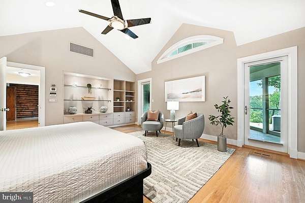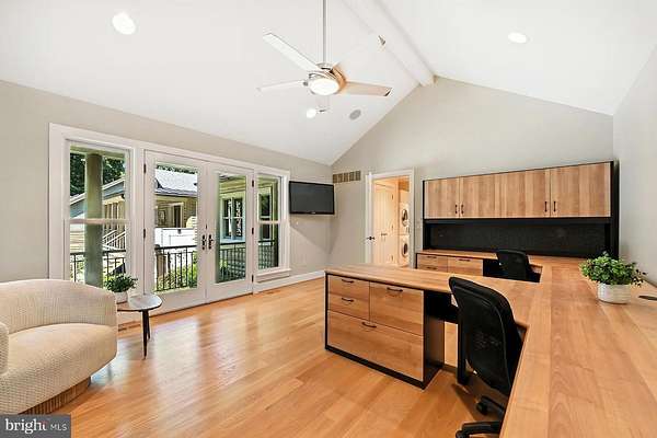 - Built-Ins, Ceiling Fan(s), Dining Area, Entry Level Bedroom, Gourmet Kitchen, Island Kitchen, Primary Bath(s), Soaking Tub Bathroom, Upgraded Countertops, Walk-In Closet(s), Walk-In Shower Bathroom, Wood Floors